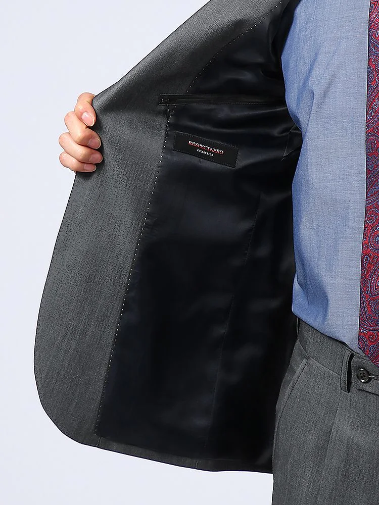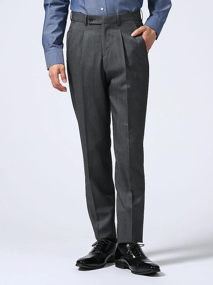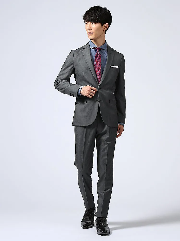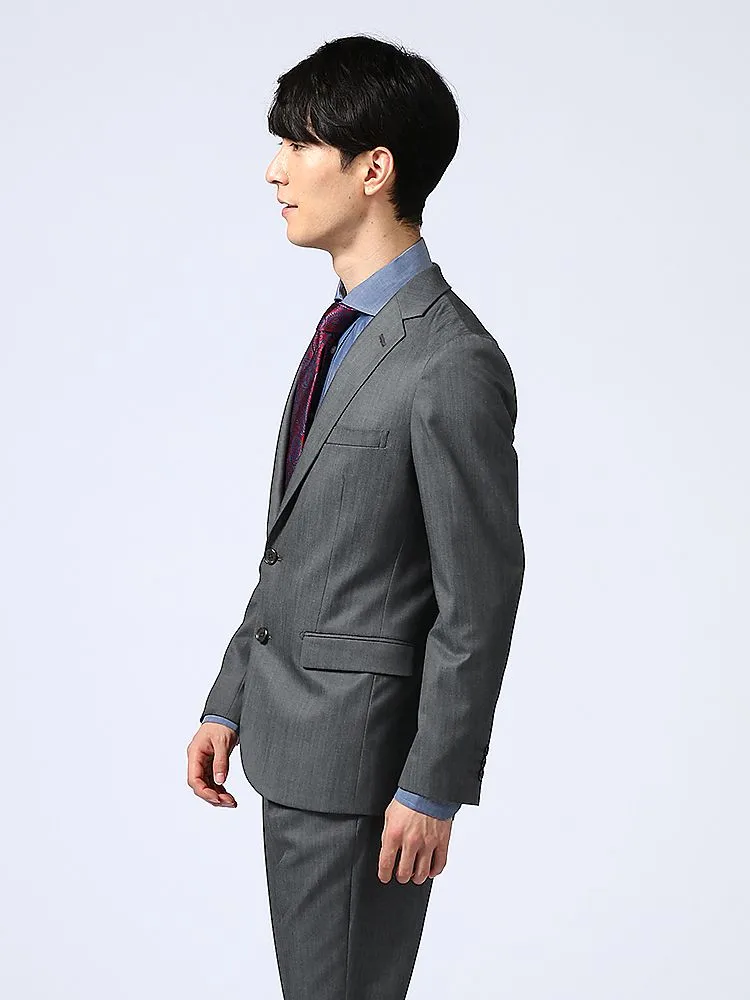 【上下ウォッシャブル】スーツ 2つボタン デニムライク ストレッチ ワンタック 無地 nero(C.グレー)