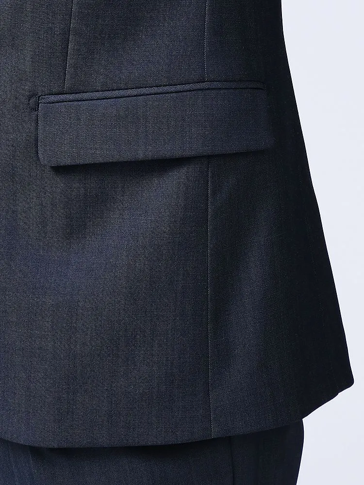 切り込みが1本のセンターベントデザインです。細身でスッキリとしたシルエットが特徴で、快適な着心地を提供します