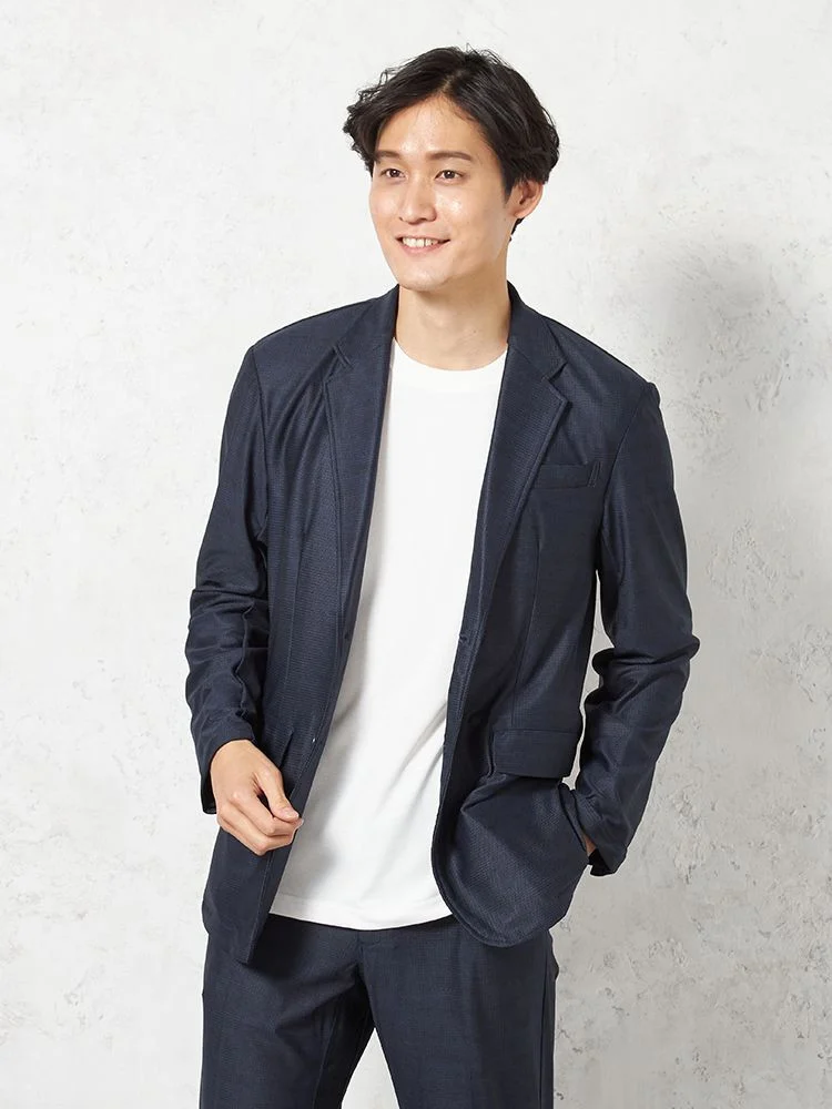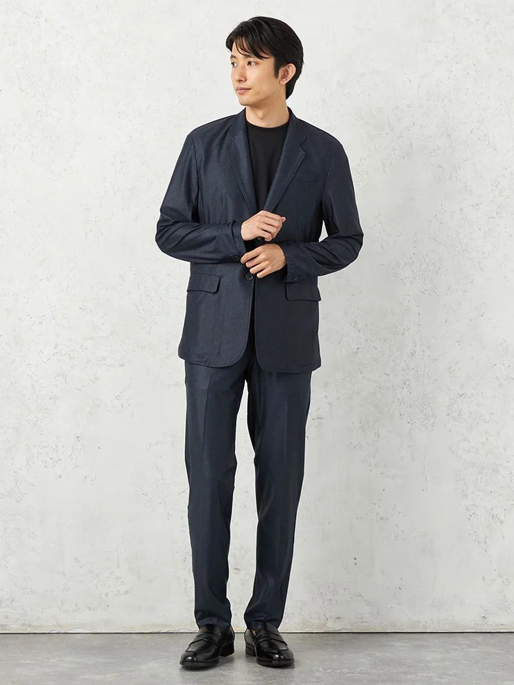 【即納】デニム調セットアップスーツ【WEB限定】上下ウォッシャブルネイビーTOKYORUN