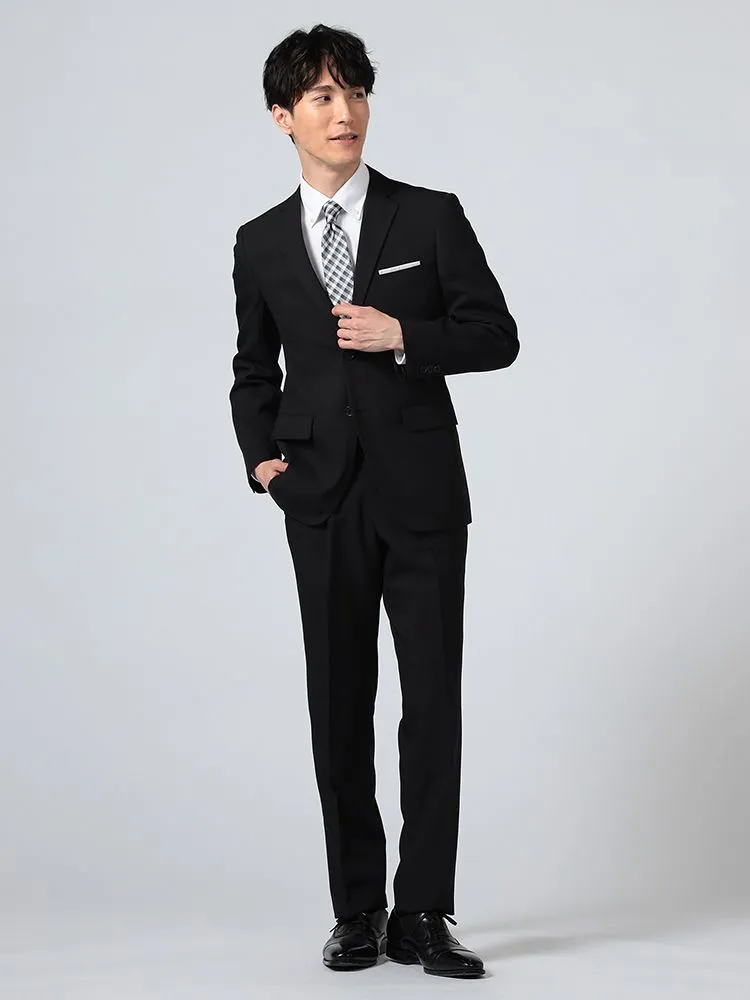 【即納】【WEB限定】スーツ2つボタン4WAYストレッチ上下ウォッシャブルミニチェックブラック
