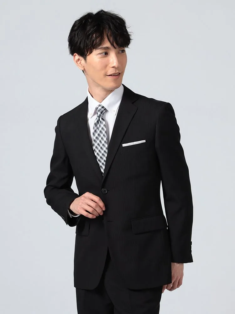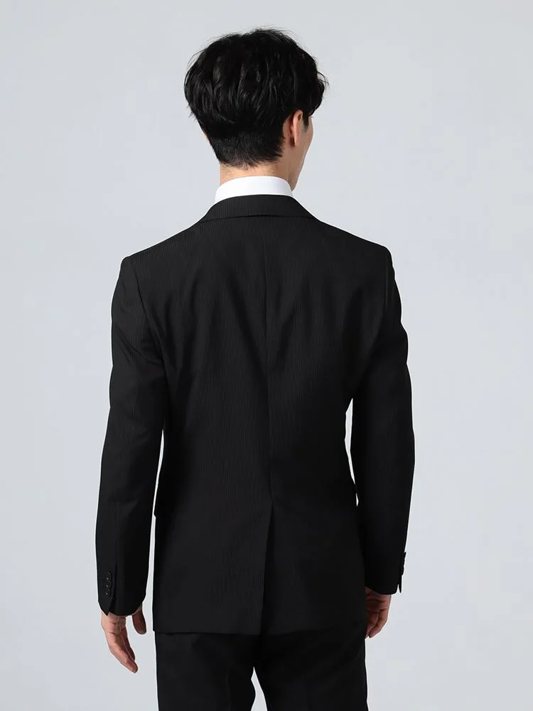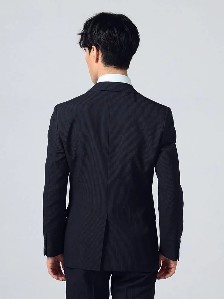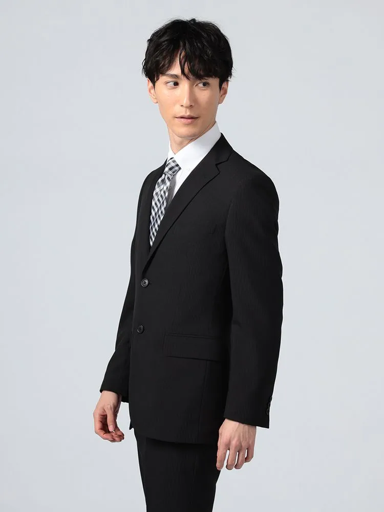 【即納】【WEB限定】スーツ2つボタン4WAYストレッチ上下ウォッシャブルシャドウストライプブラック
