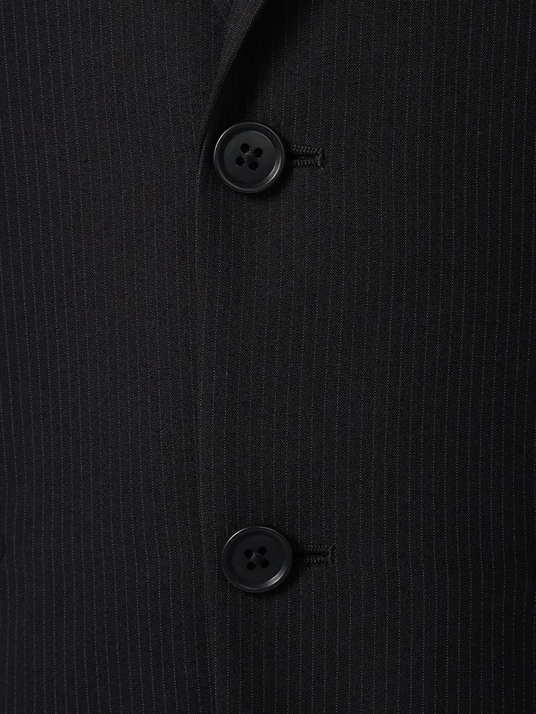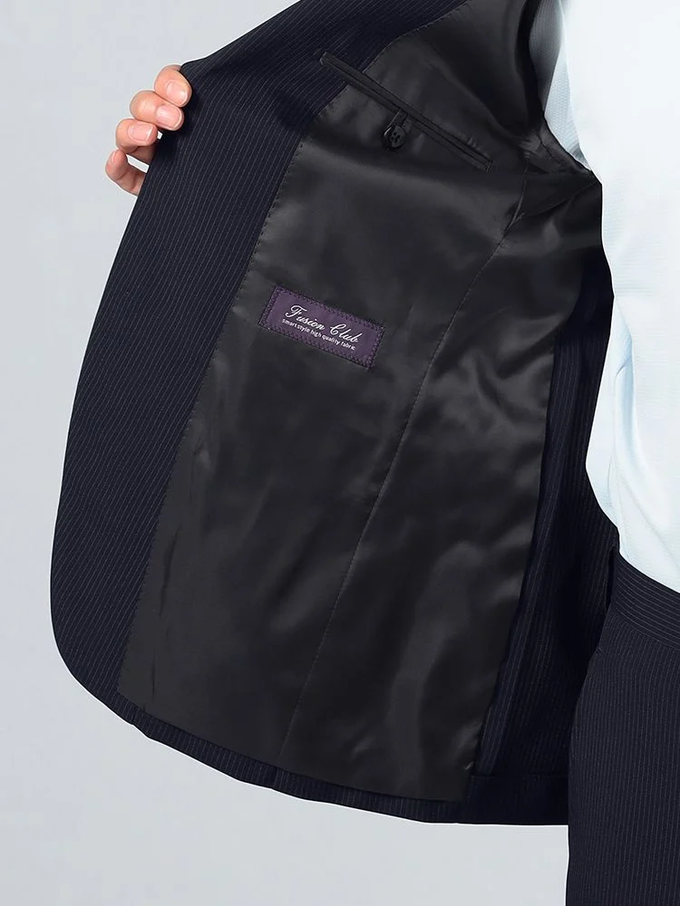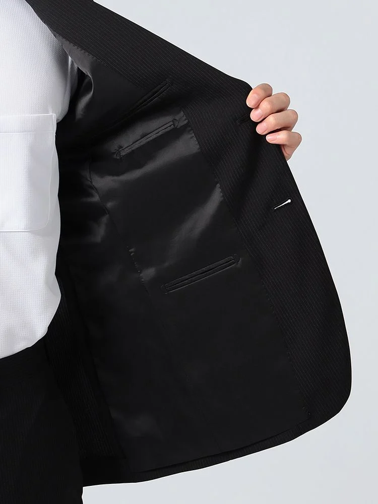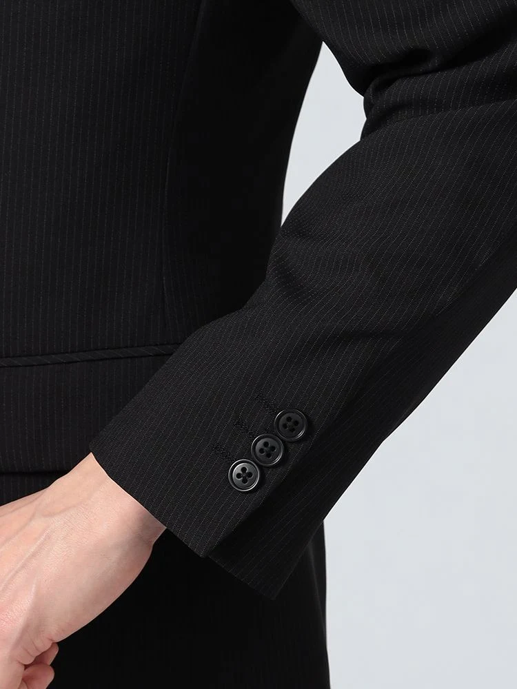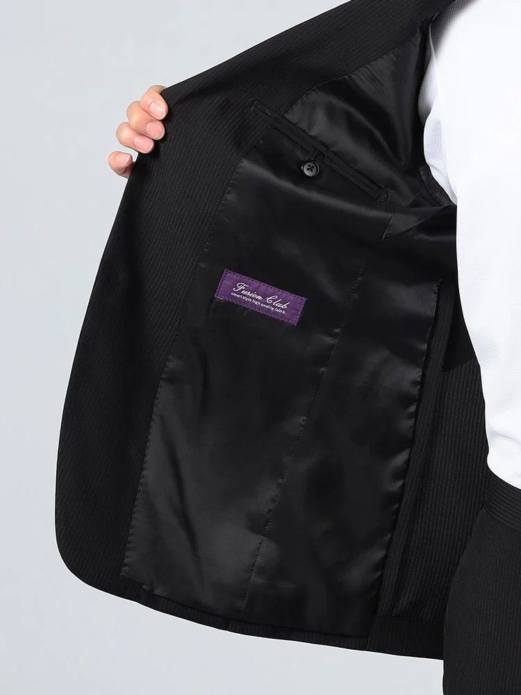 【上下ウォッシャブル】スーツ 2つボタン イージーケア ポリエステル100% ストライプ フュージョンクラブ 春夏(ブラック)
