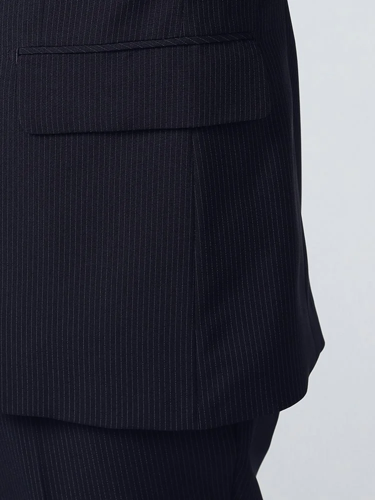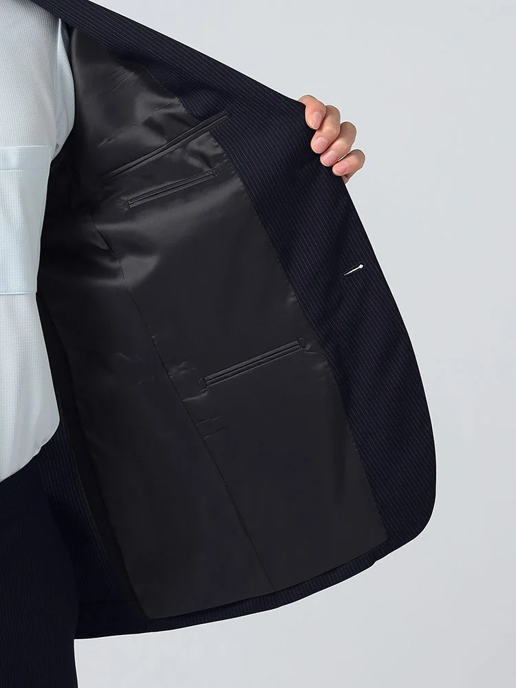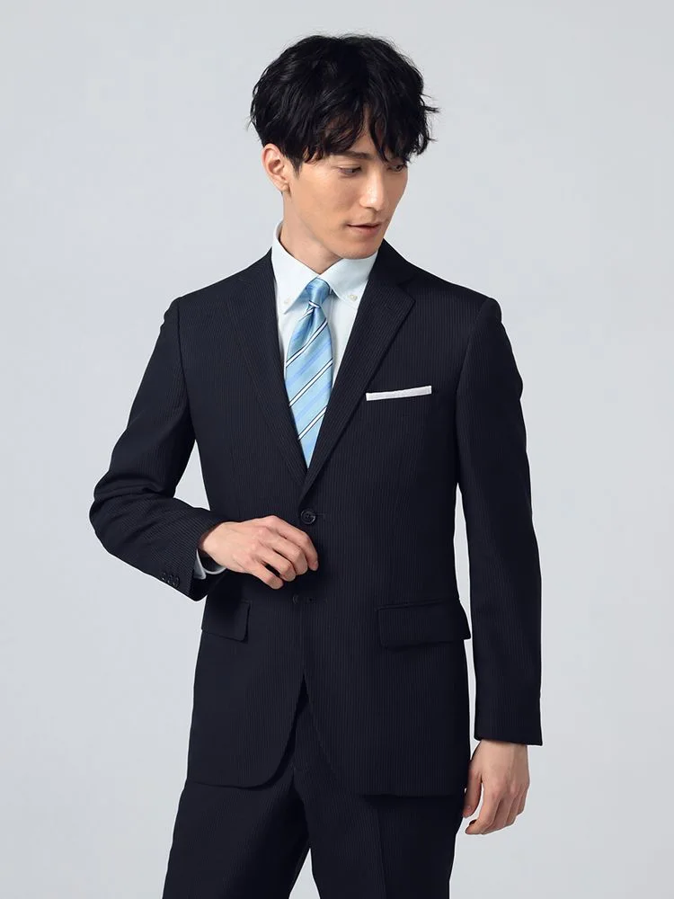 【即納】【WEB限定】スーツ2つボタン4WAYストレッチ上下ウォッシャブルストライプネイビー