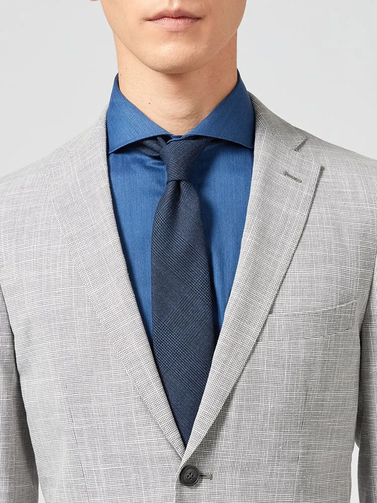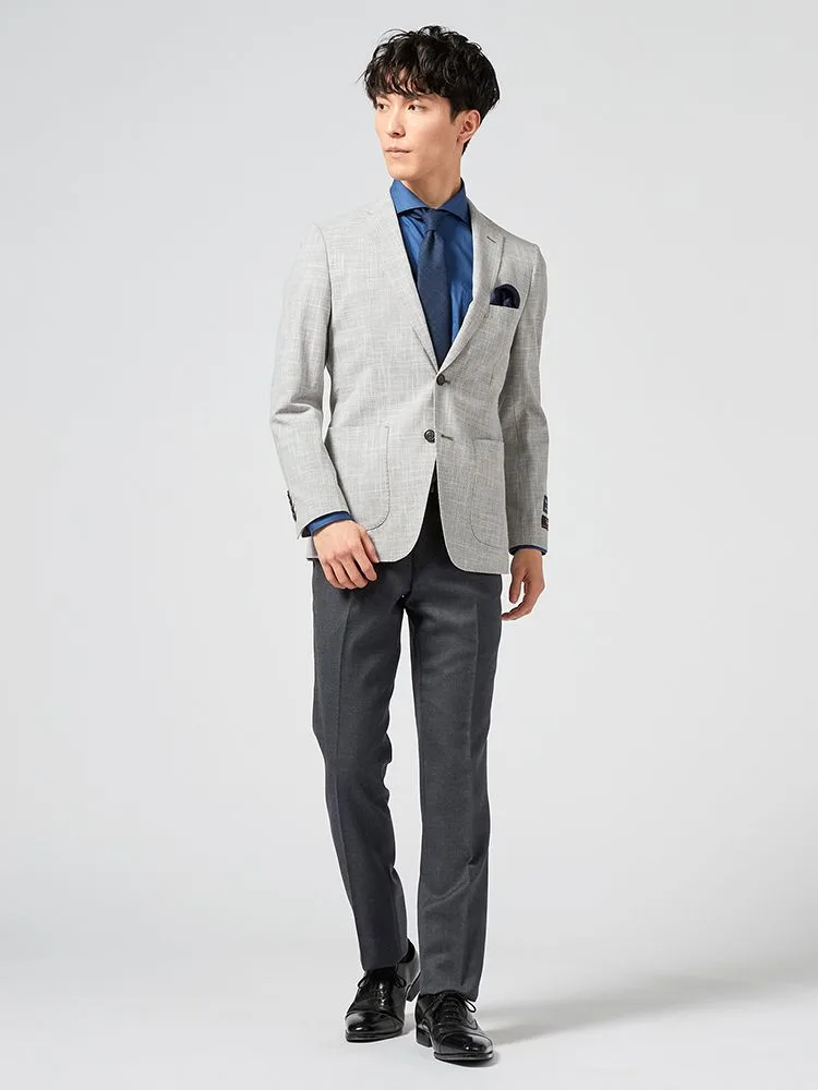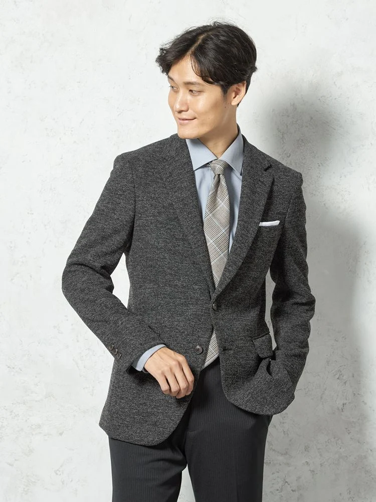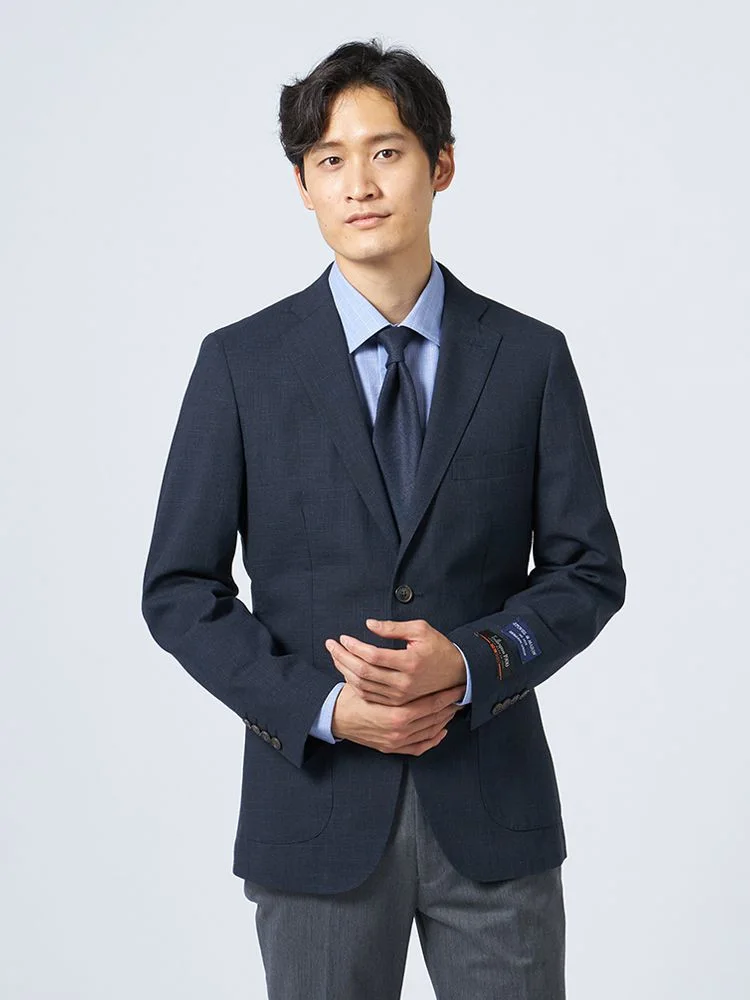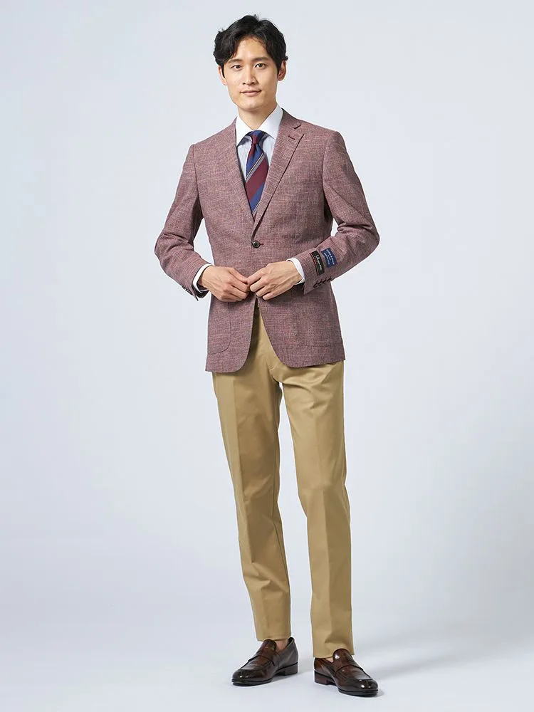 麻をミックスさせて清涼感を持たせたテーラードジャケットです。