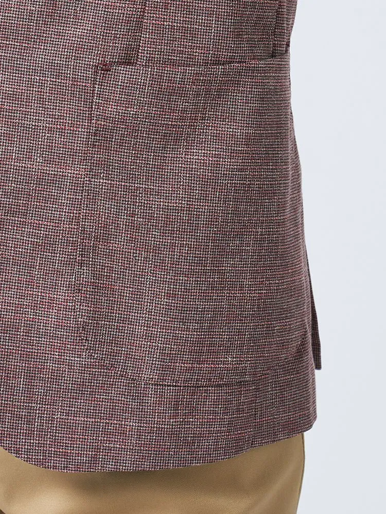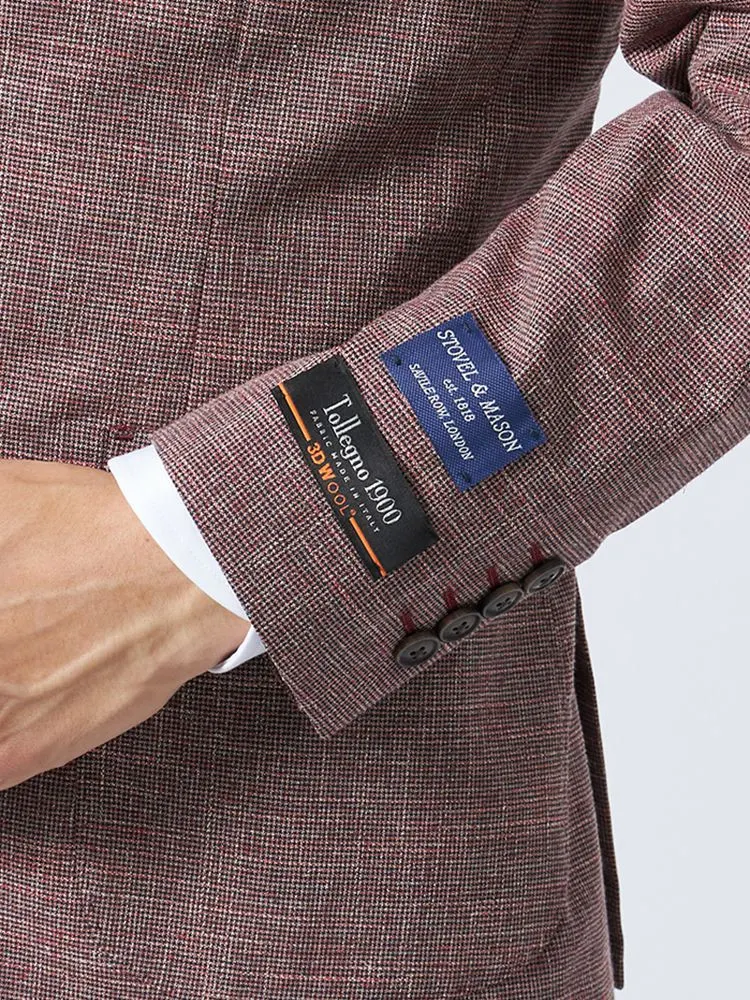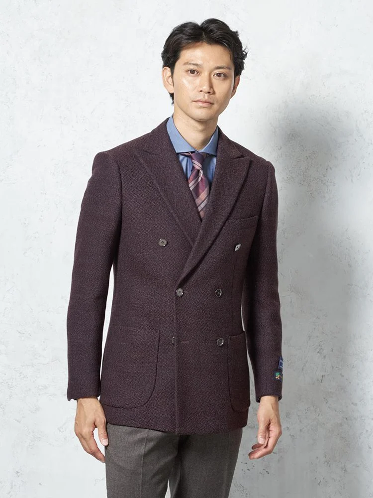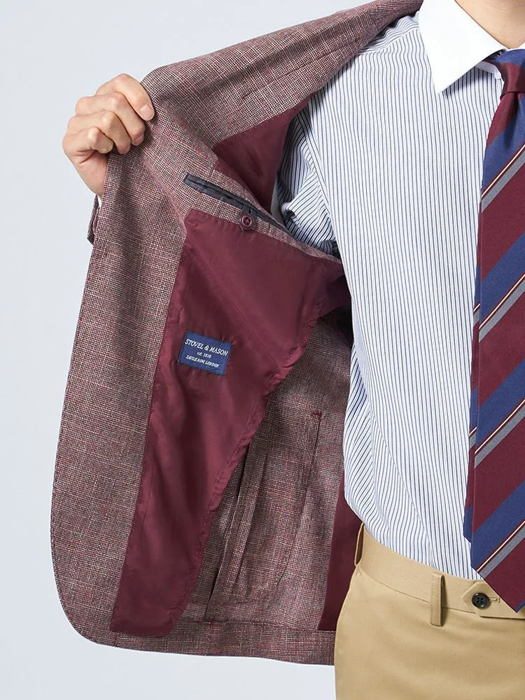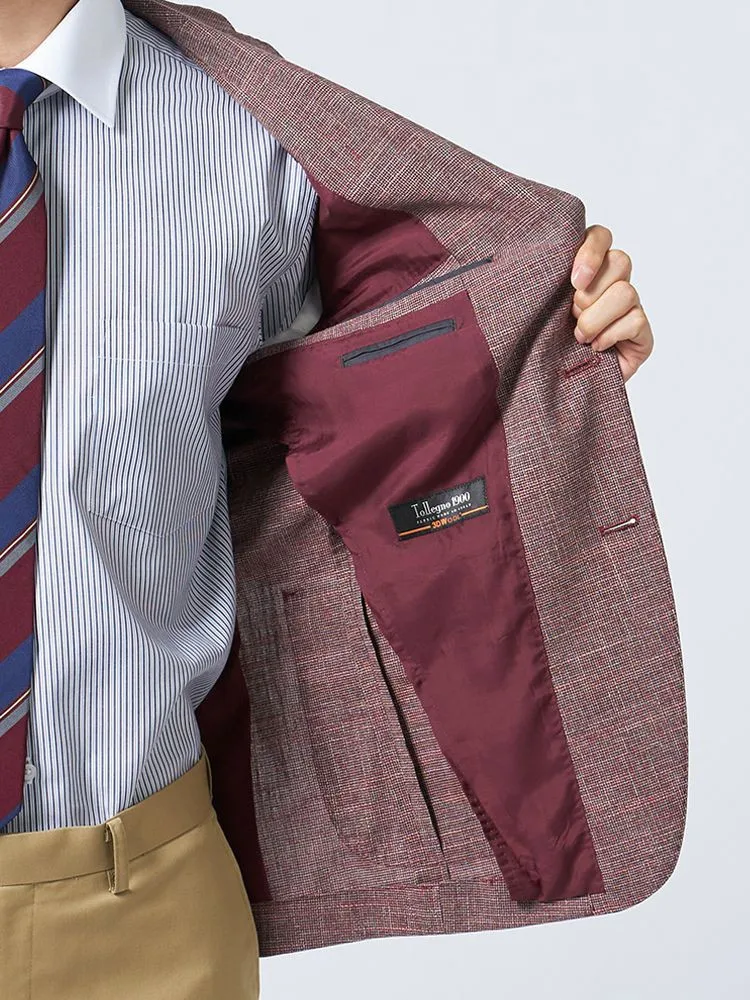 【ストレッチ】ジャケット 2つボタン TOLLEGNO社生地使用 キュプラ裏地 千鳥格子 S&M BLUE LABEL(ワイン)