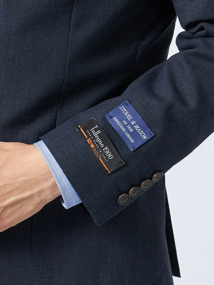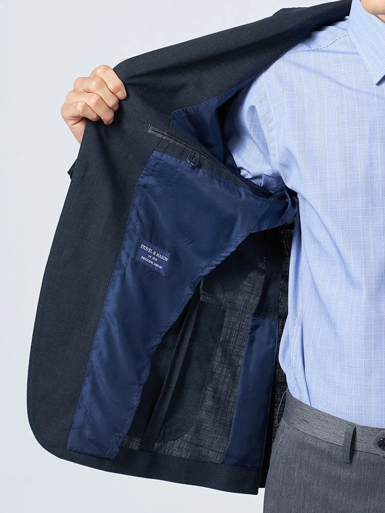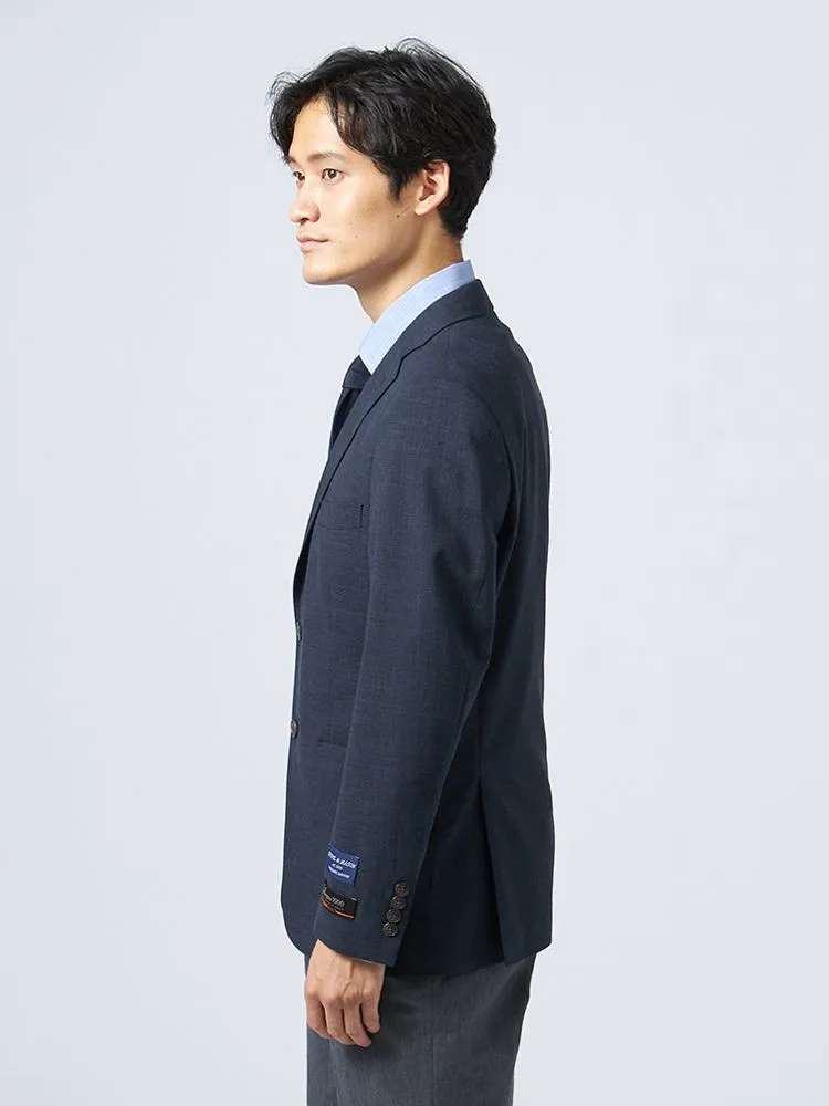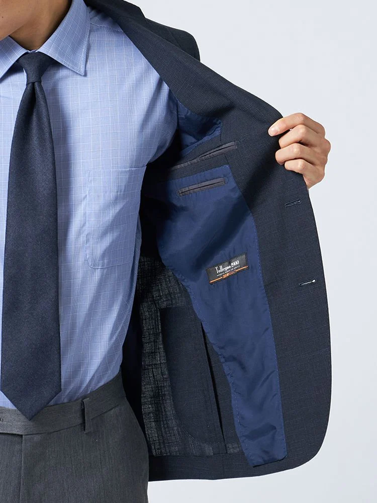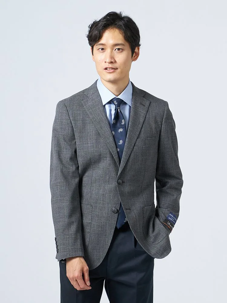 【ストレッチ】ジャケット2つボタンTOLLEGNO社生地使用キュプラ裏地グレンチェックS&MBLUELABEL