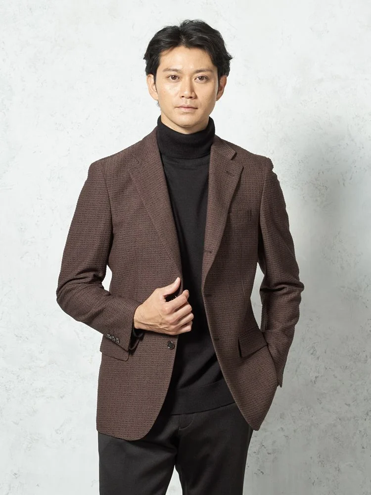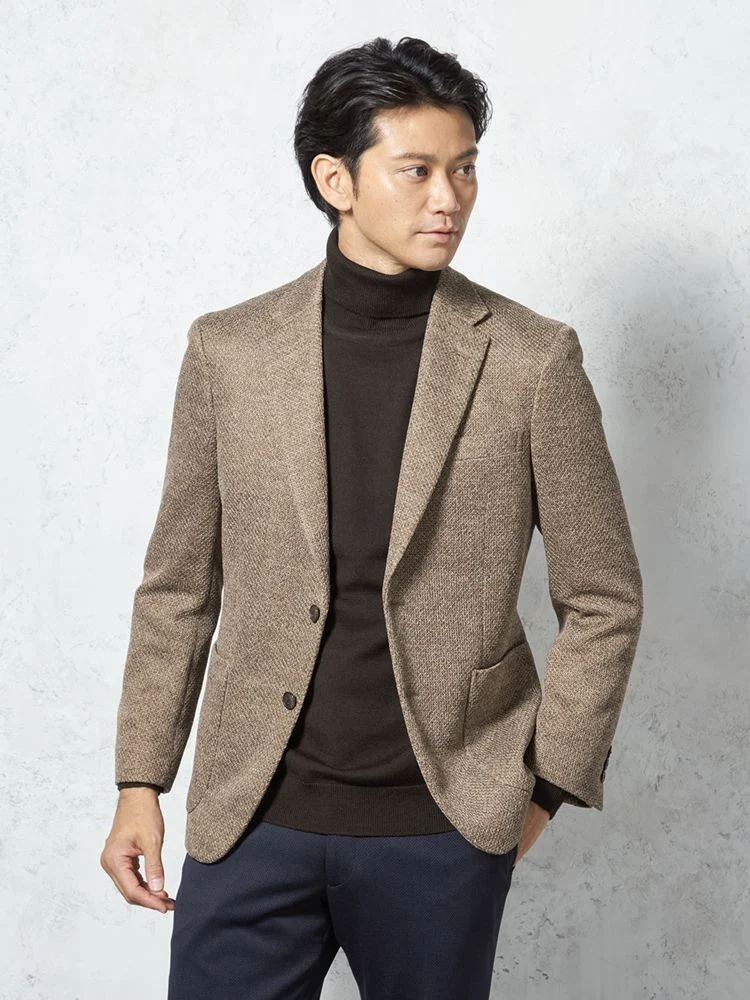 2つボタンのデザインで、クラシックなスタイルを演出。落ち着きと品のあるアイテムです。