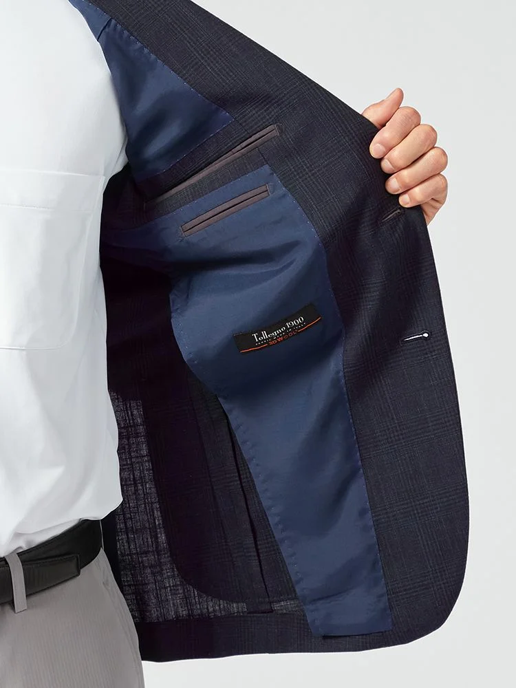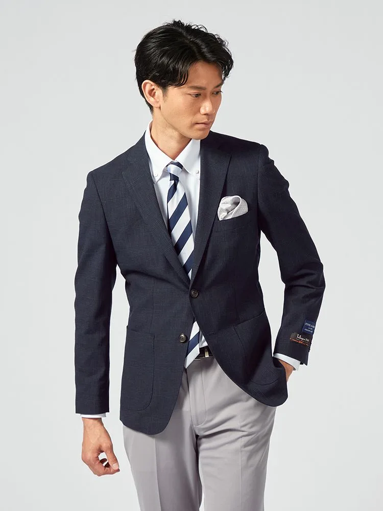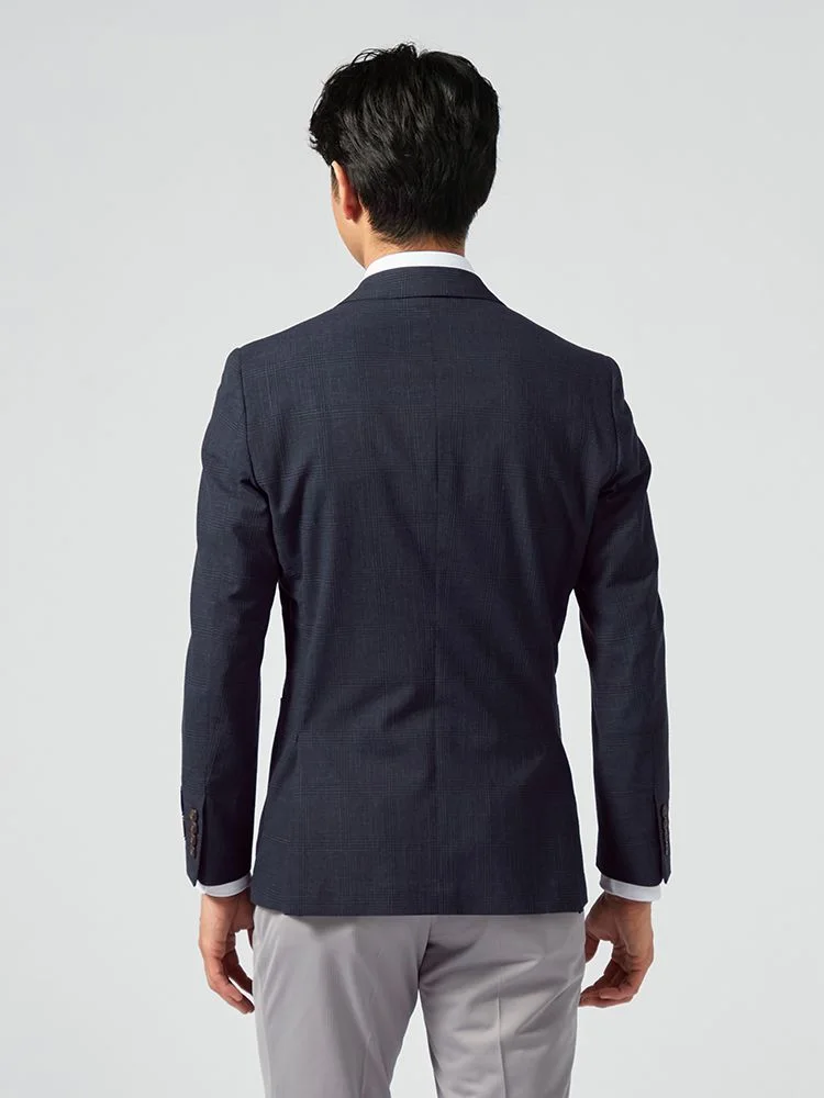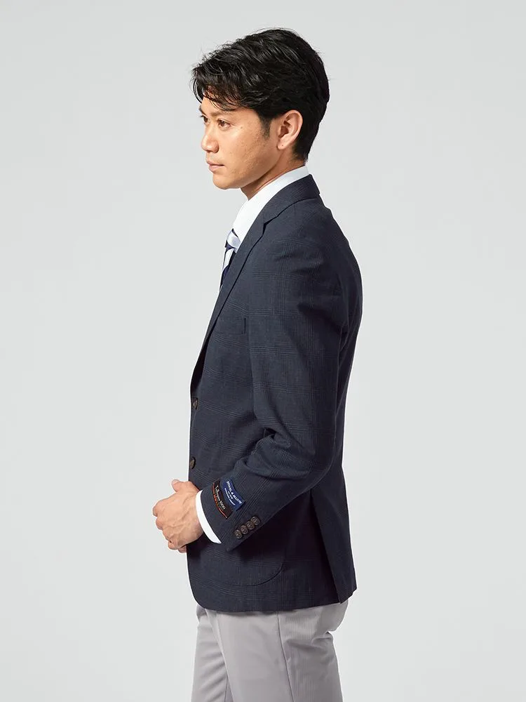 【ストレッチ】ジャケット 2つボタン TOLLEGNO社生地使用 キュプラ裏地 グレンチェック S&M BLUE LABEL(ネイビー)