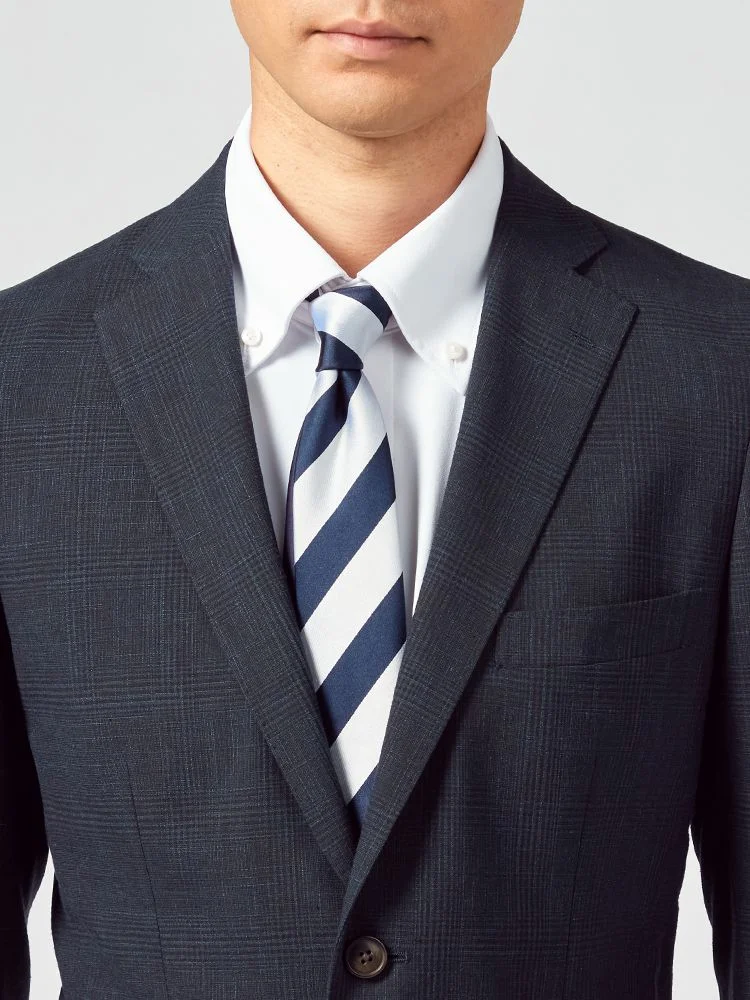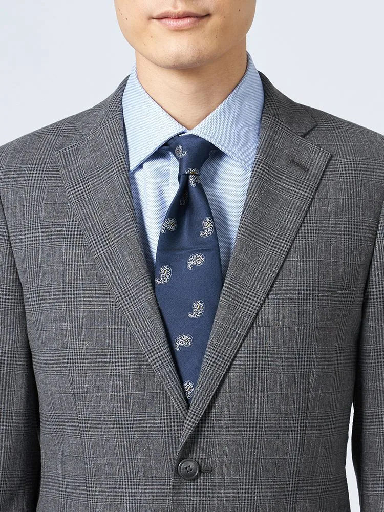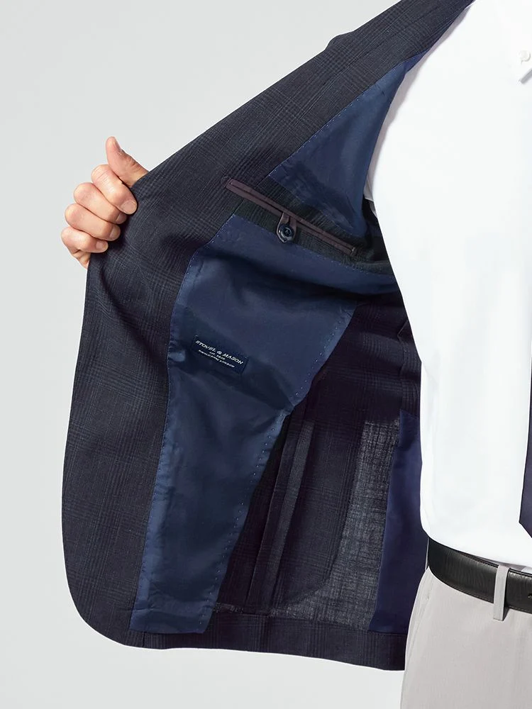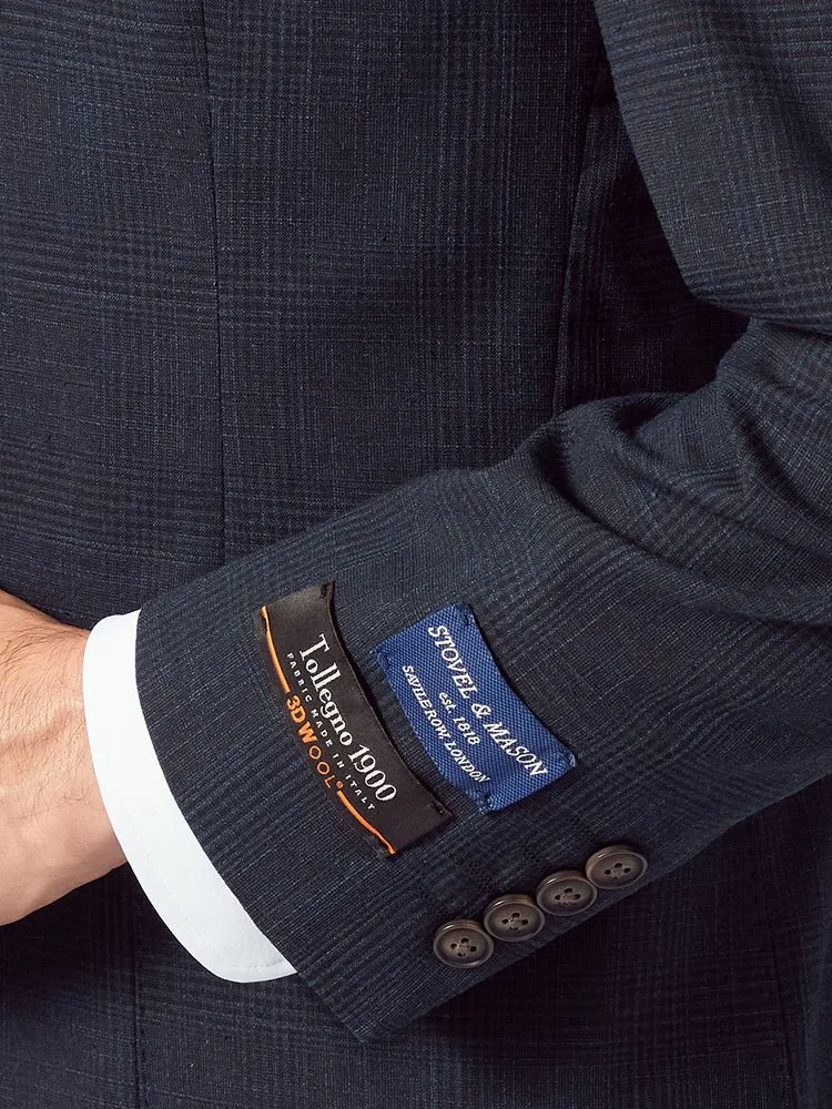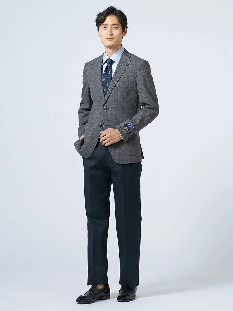 【ストレッチ】ジャケット 2つボタン TOLLEGNO社生地使用 キュプラ裏地 グレンチェック S&M BLUE LABEL(ネイビー)