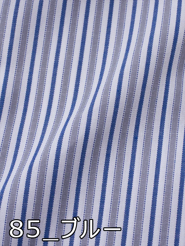 【形態安定】長袖 ワイシャツ セミワイド 綿100% ストライプ S&M BLUE LABEL 通年(ブルー)