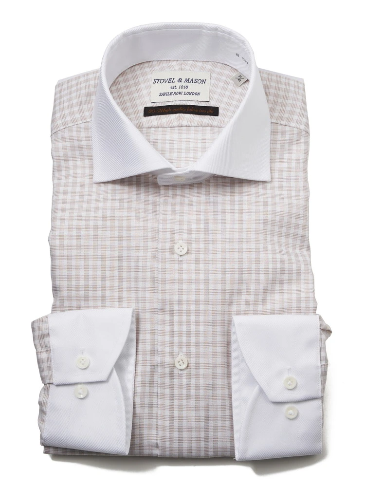 イギリスの老舗ブランド「ストーベル&メイソン」のセミワイドカラ―シャツ。