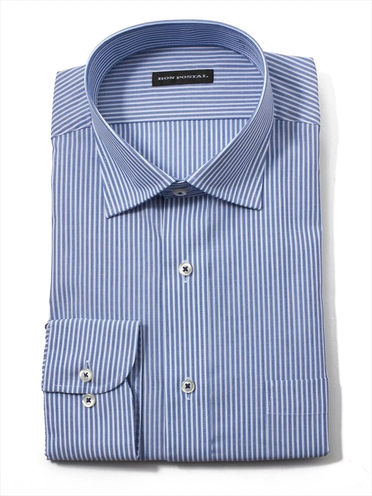 【形態安定】長袖ワイシャツセミワイドイージーケアストライプRONPOSTAL通年