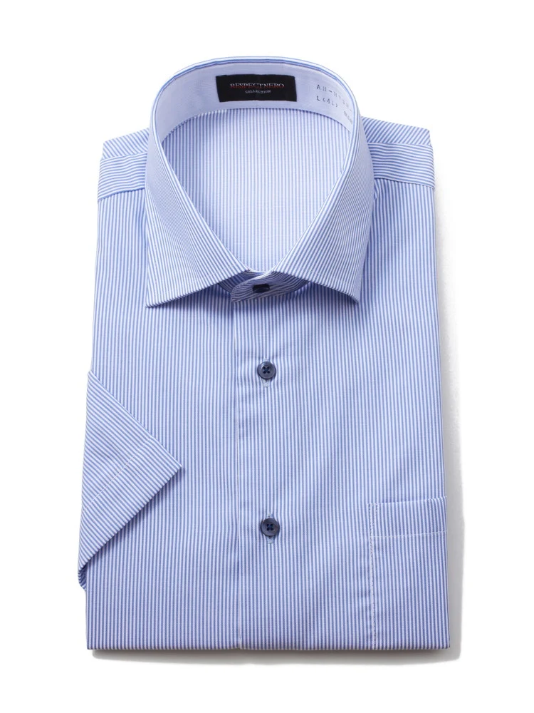 【形態安定】半袖ワイシャツカッタウェイ綿100%防汚/抗菌/防臭ロンドンストライプカンサイ・ヤマモト春夏