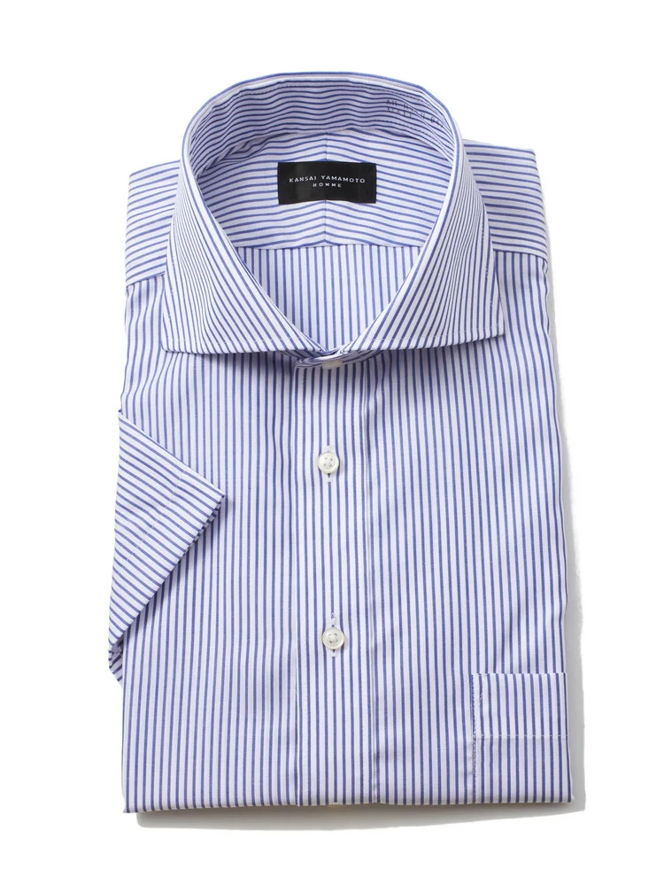 • 【形態安定】半袖 ワイシャツ カッタウェイ 綿100% 防汚/抗菌/防臭 ロンドンストライプ カンサイ・ヤマモト 春夏 1270405653