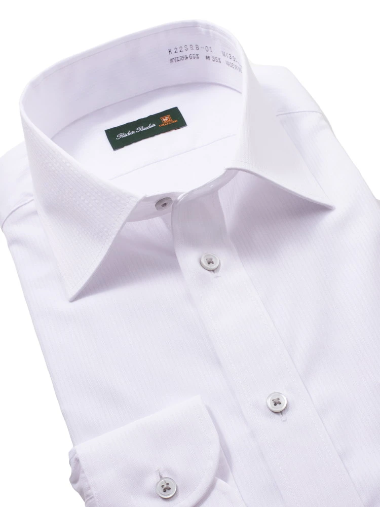 【形態安定】長袖ワイシャツセミワイドRONPOSTAL織柄無地通年