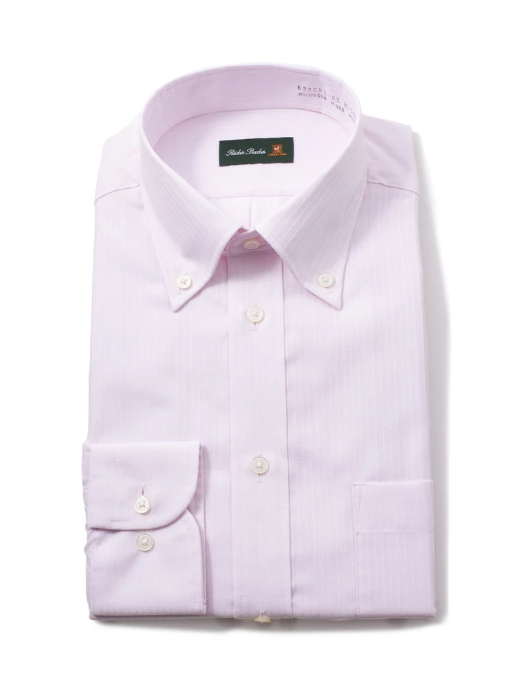 【形態安定】長袖ワイシャツボタンダウン【コットンプレミアムケア】ストライプリッケンバッカー通年