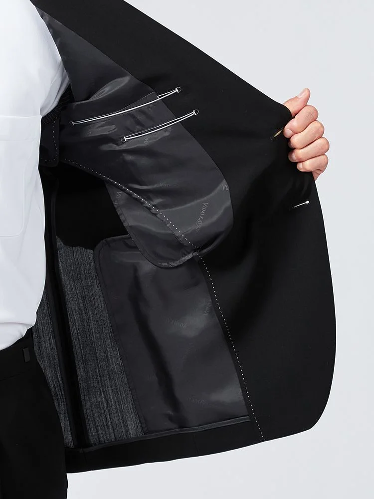 切り込みが1本のセンターベントデザインです。細身でスッキリとしたシルエットが特徴で、快適な着心地を提供します