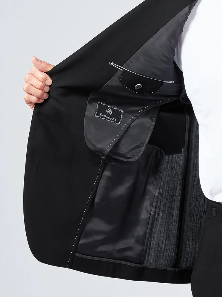 フォーマルなシーンに活躍してくれるブラックスーツです。
