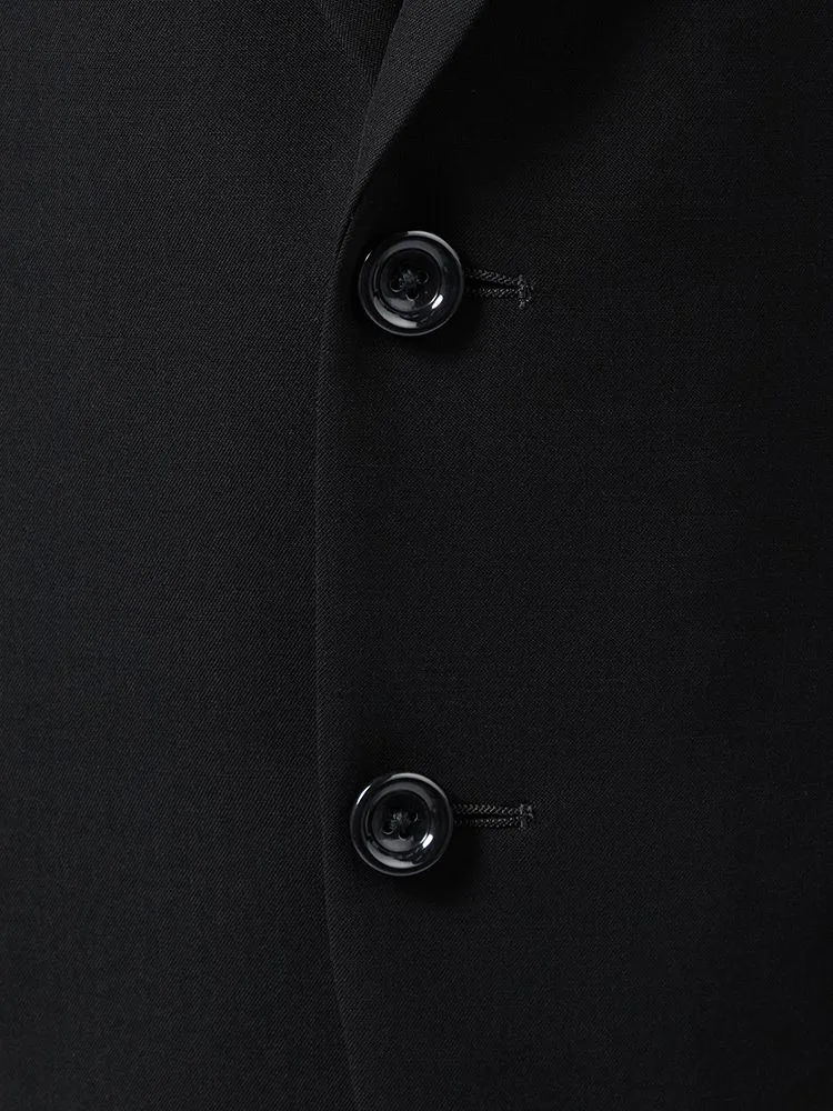 [礼服]【ワンタック】フォーマル2つボタンサマーフォーマルウール混黒無地チェスターバリー春夏