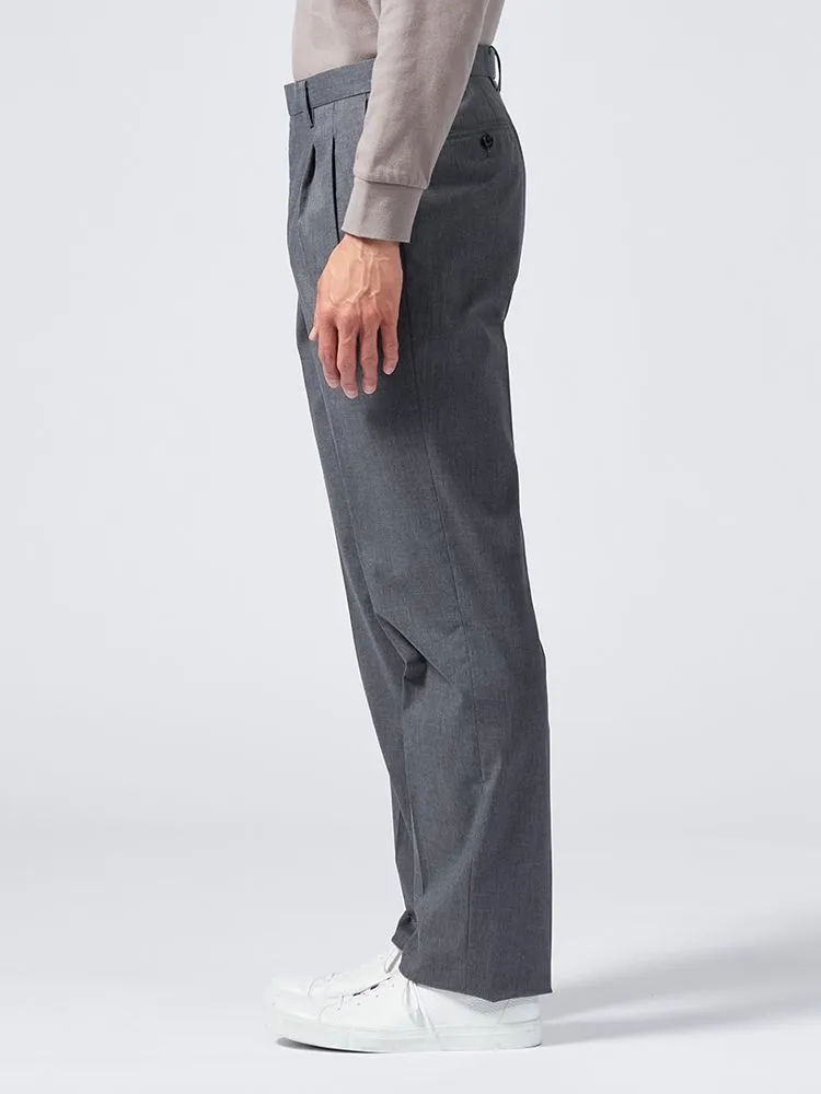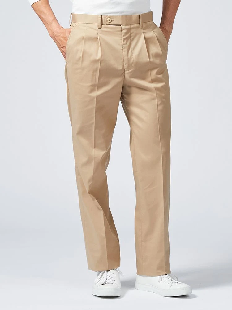 左右に2本ずつ生地の折り込みがあり、ワンタックよりゆとりをもったデザインで、よりリラックスした着心地を提供します