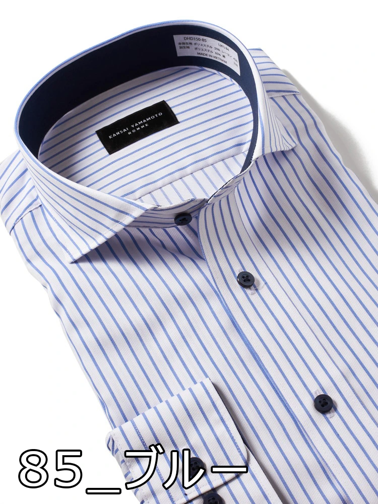 • ブルー 【形態安定】長袖 ワイシャツ カッタウェイ 遮熱 吸汗速乾 夏長 柄 カンサイ・ヤマモト 春夏 1185765489