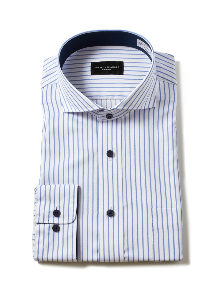 【形態安定】長袖 ワイシャツ カッタウェイ 遮熱 吸汗速乾 夏長 柄 カンサイ・ヤマモト 春夏(ブルー)
