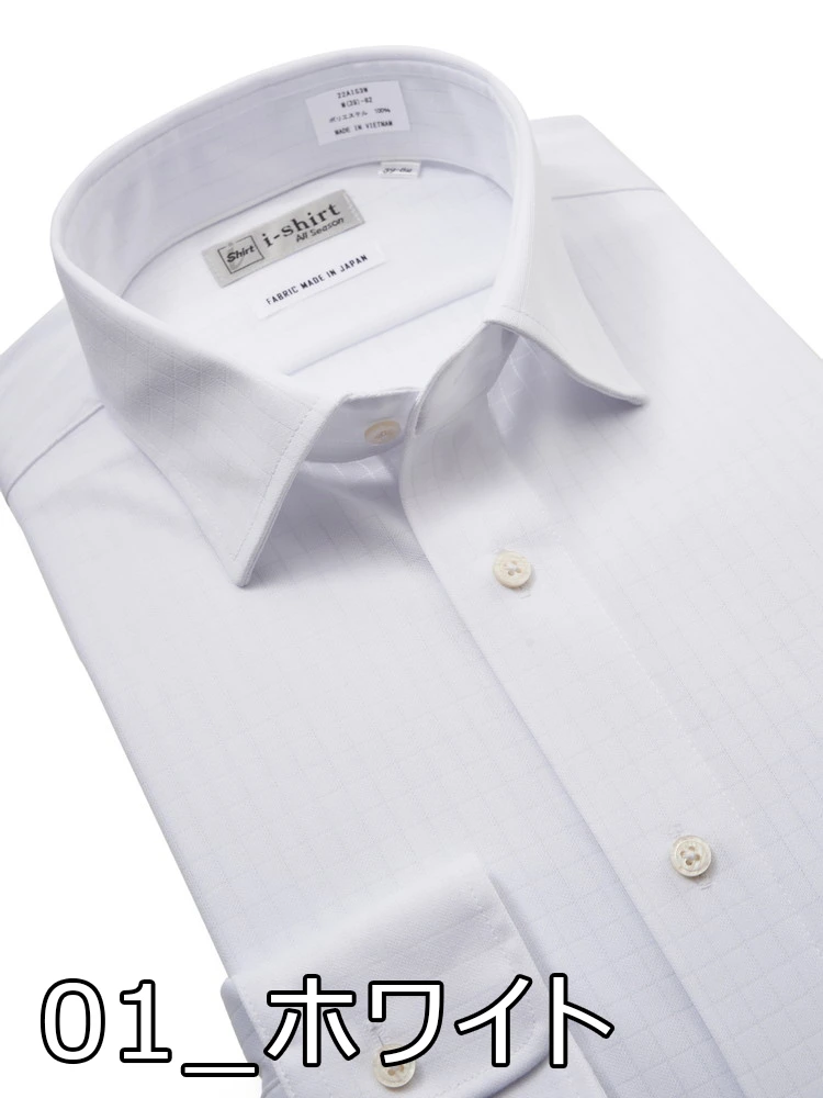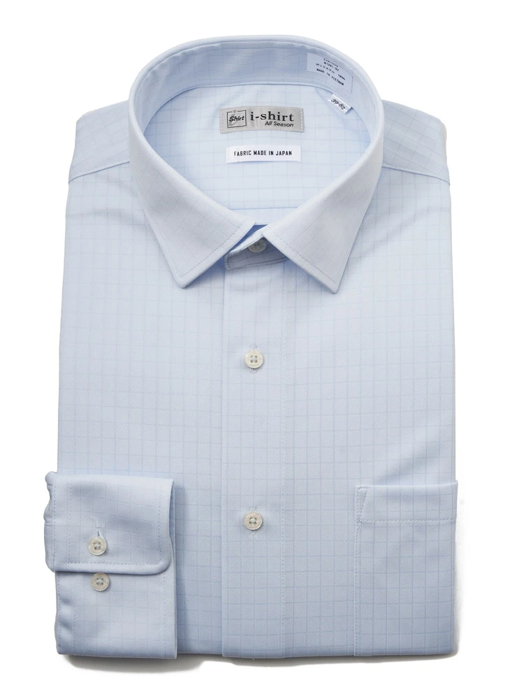 【完全ノーアイロン】長袖アイシャツセミワイドカラー市松柄ワイシャツ通年