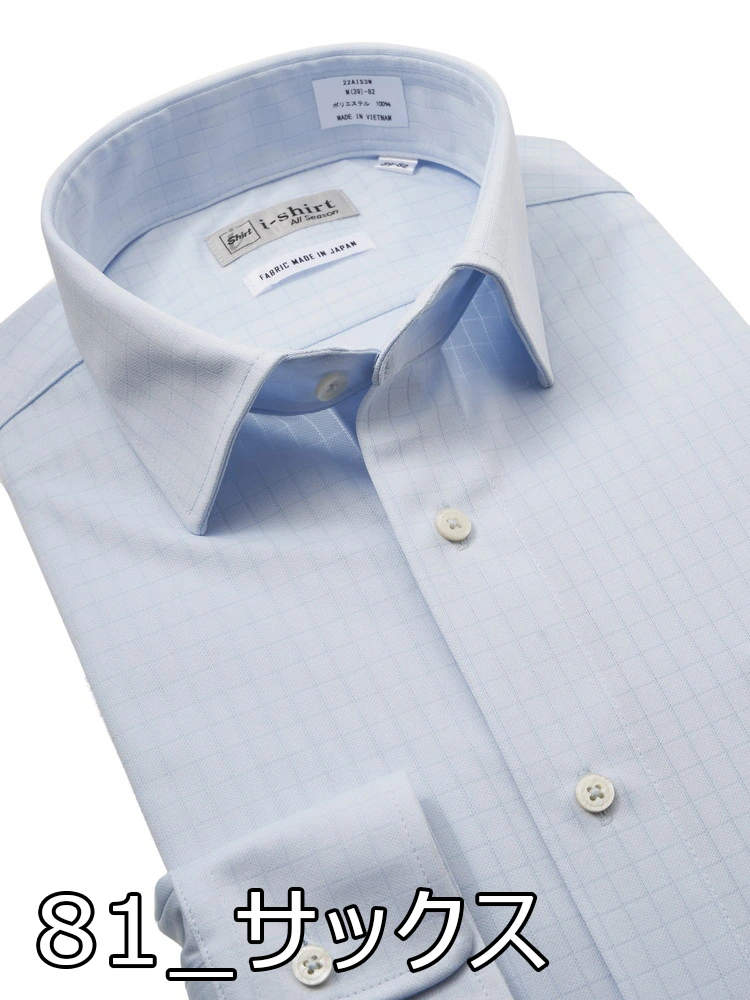 【完全ノーアイロン】長袖 アイシャツ セミワイド ストレッチ 速乾 織柄無地 ワイシャツ 通年(サックス)