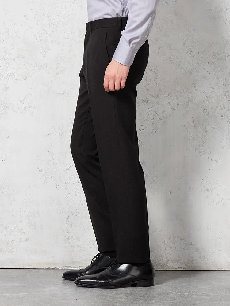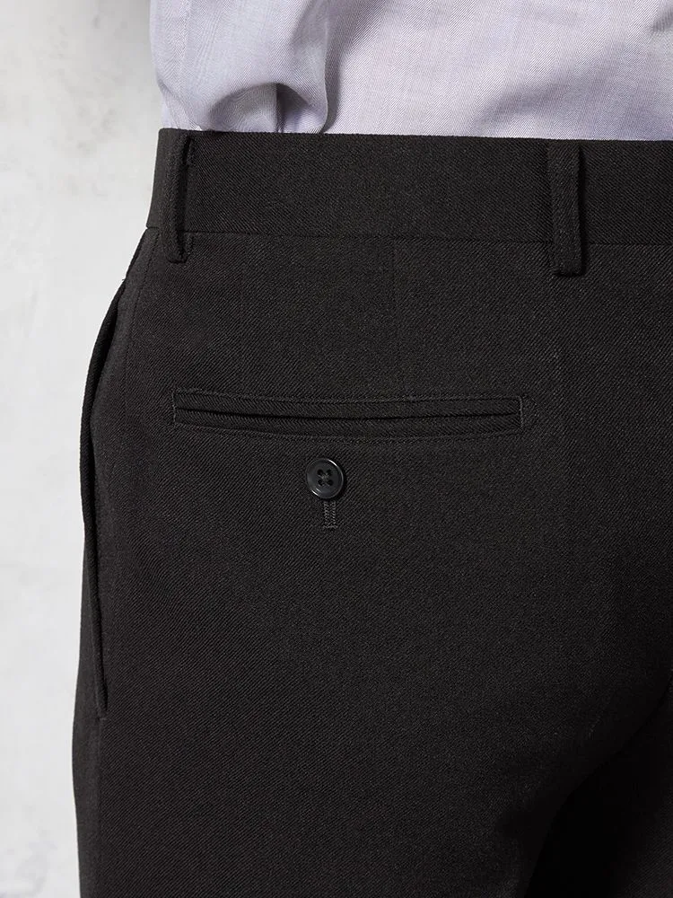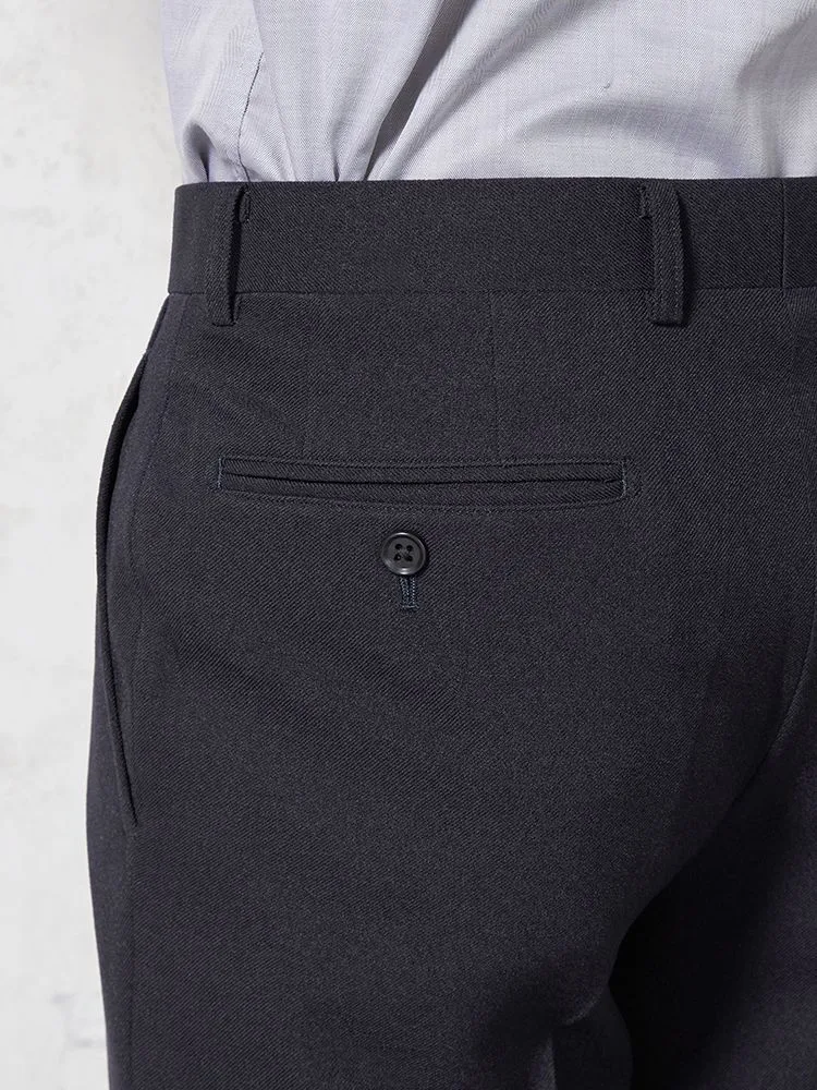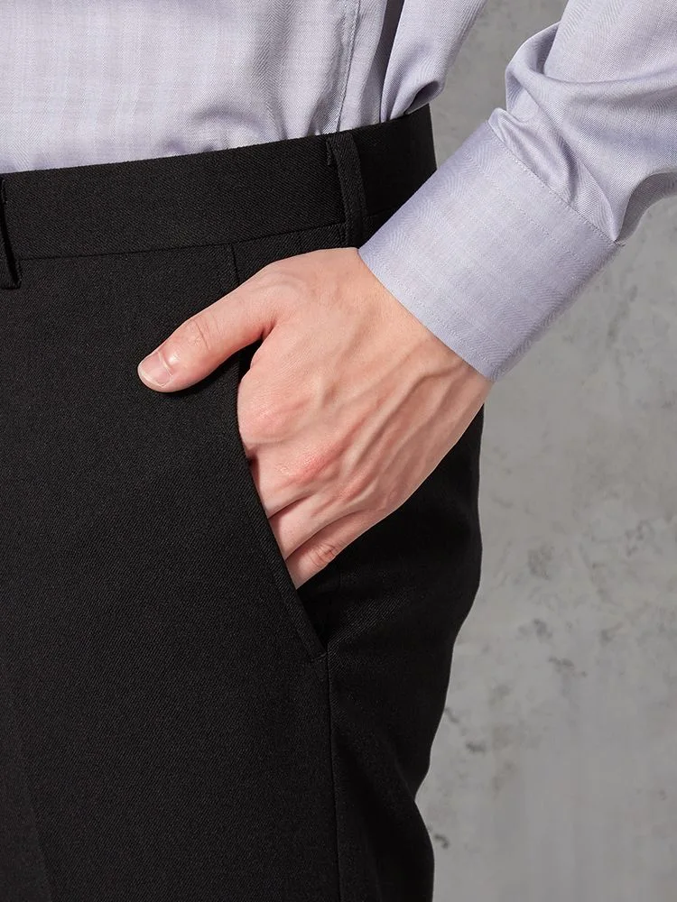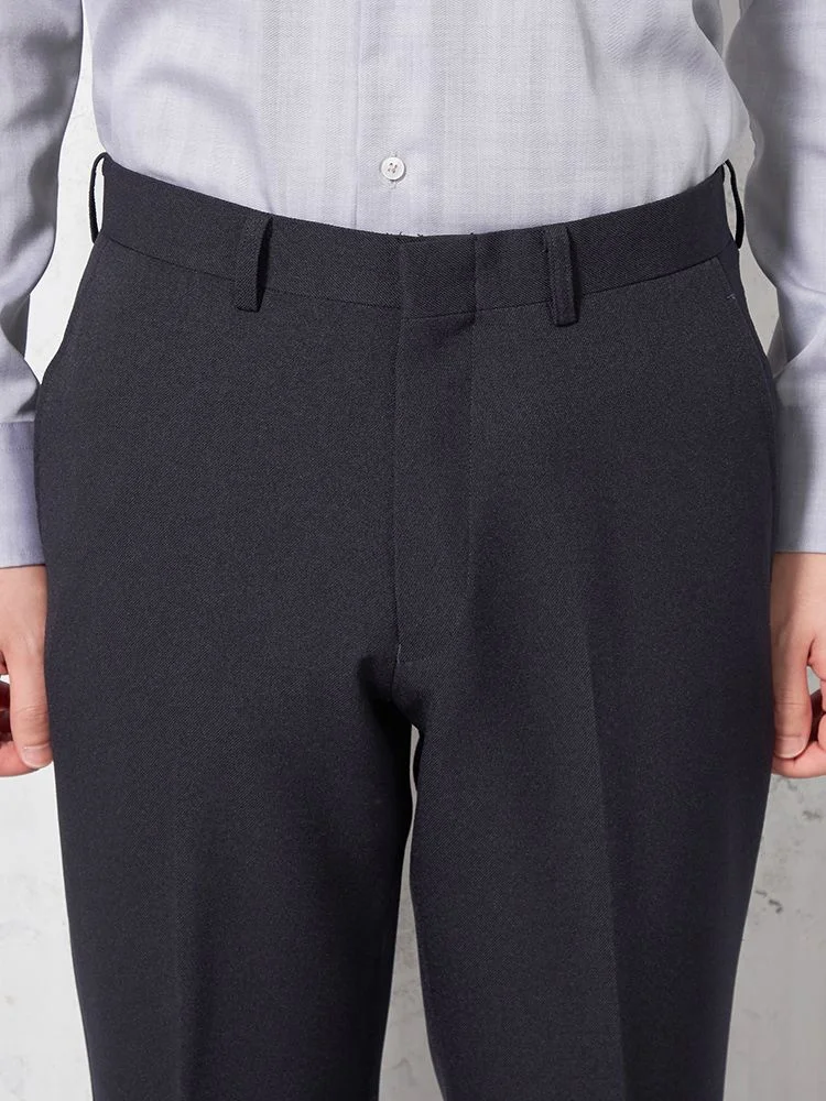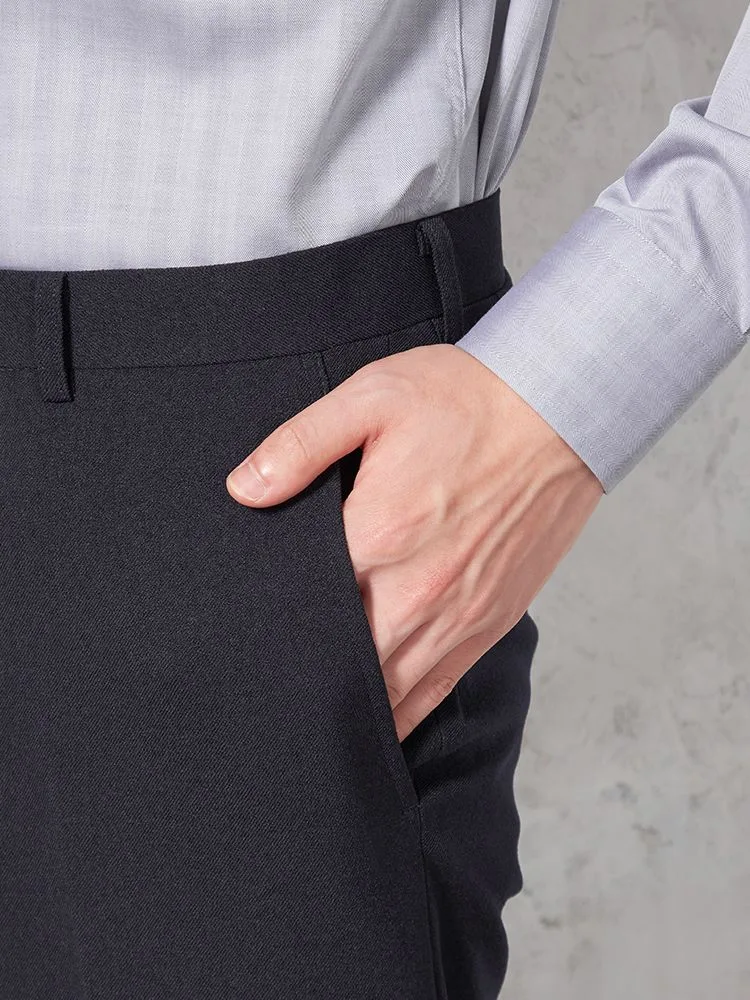 パンツの腰回りに生地の折り込みがなく、スッキリとしたシルエットを実現します。シンプルで洗練された印象を与え、すっきりとした着こなしが可能です。