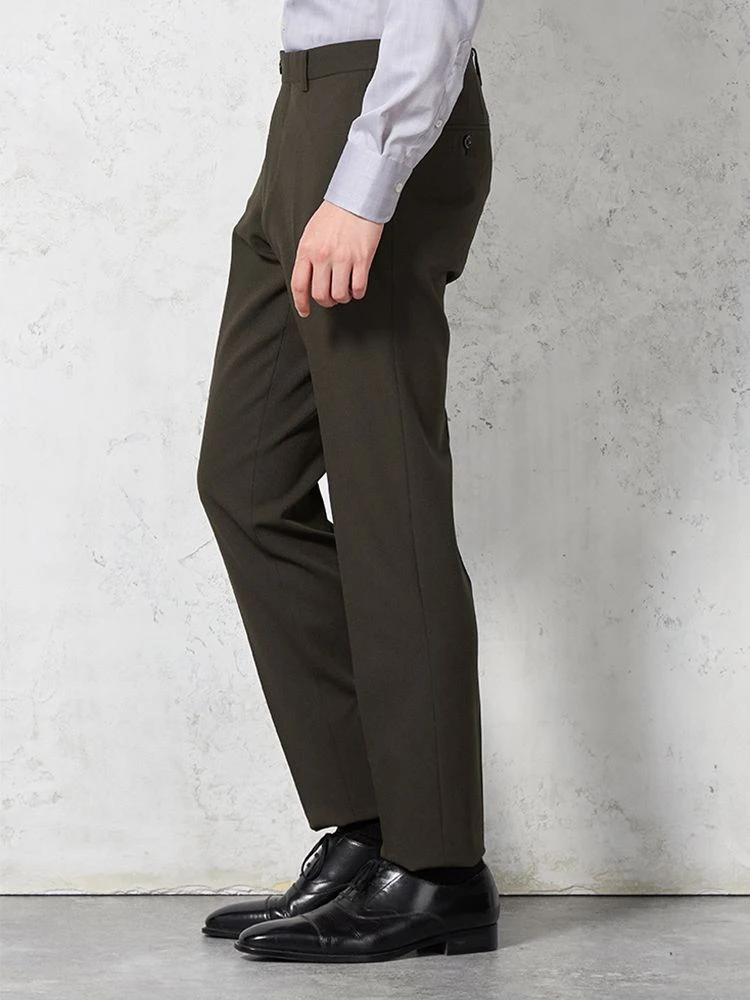 家庭洗濯が可能な股シック付きのノータックパンツです。