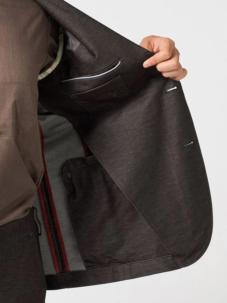 切り込みが1本のセンターベントデザインです。細身でスッキリとしたシルエットが特徴で、快適な着心地を提供します