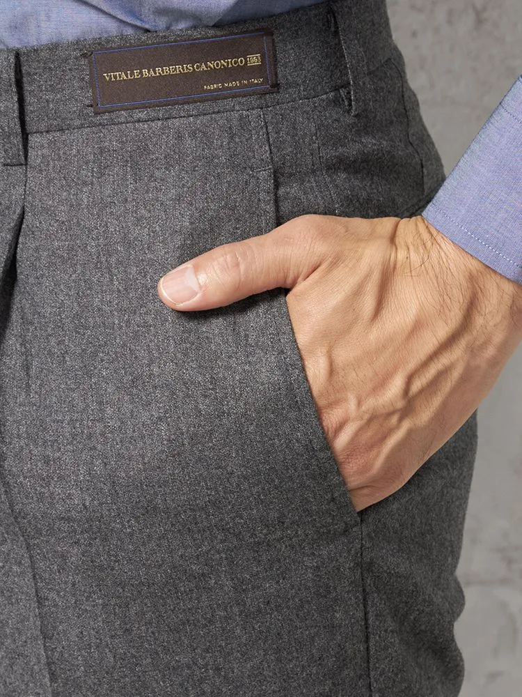 【ウール100%】パンツワンタックイタリアマルラーネ社製生地グレー無地RUCKENBACCHAR