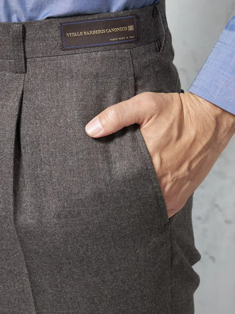 【ウール100%】パンツ ワンタック カノニコ スラックス 無地 S&M BLUE LABEL 秋冬(ブラウン)