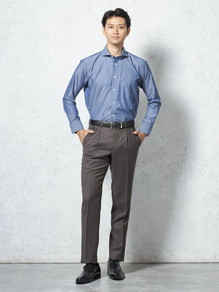 あわせるアイテムを選ばない定番のカラー、オフィスはもちろん休日のきれいめスタイルにもおすすめです。