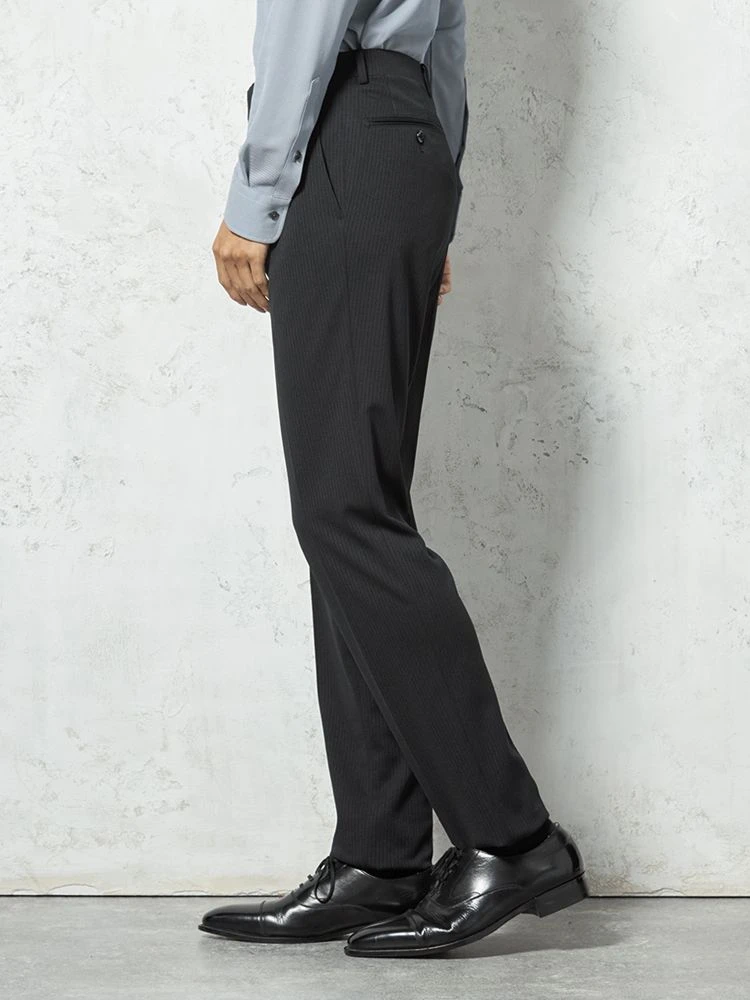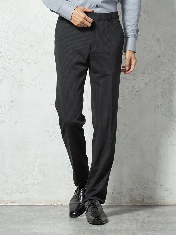 スマートなシャドウストライプのノータックスラックスです。