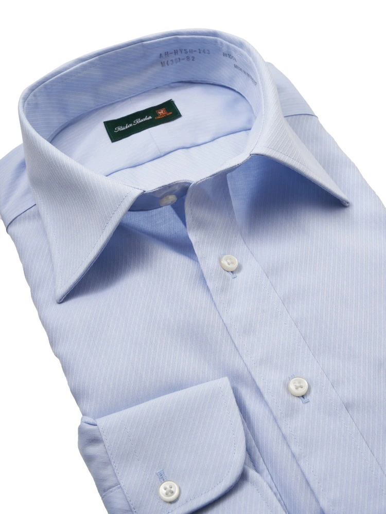 【超形態安定】長袖ワイシャツセミワイド綿100%NEVIRON4(超形態安定ナノ加工)織柄無地リッケンバッカー通年