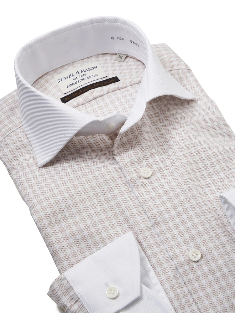 【綿100%】長袖 ワイシャツ クレリック 形態安定加工 チェック STOVEL&MASON 通年
