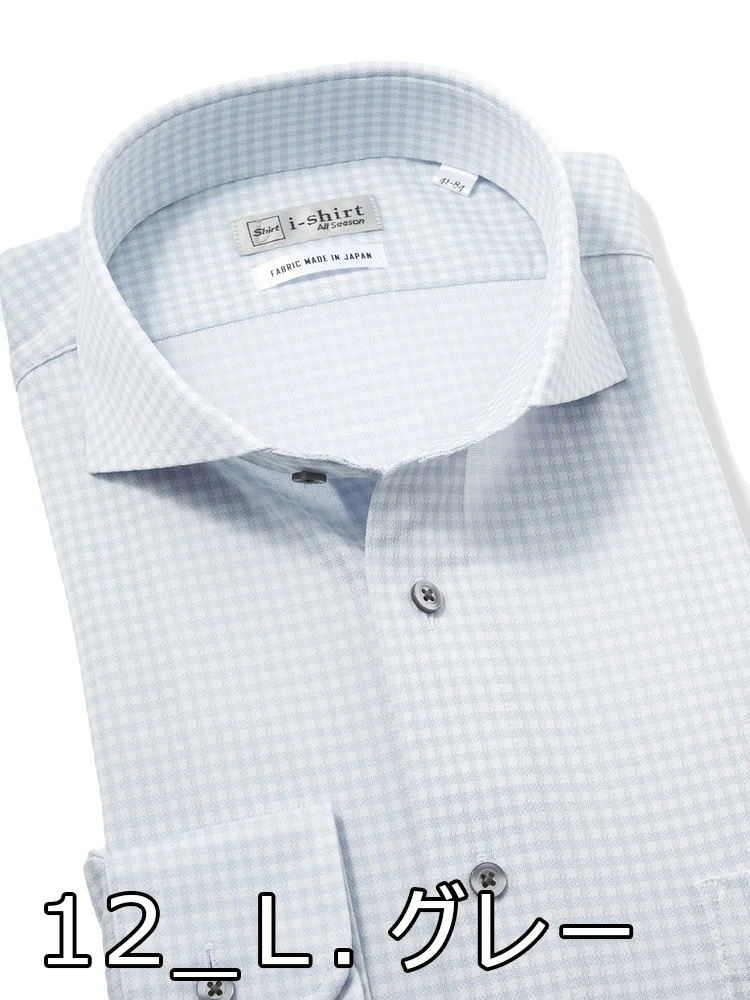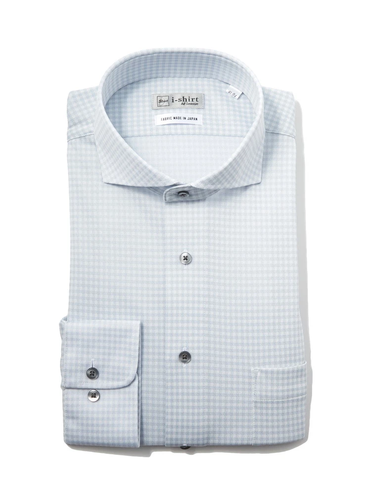 【完全ノーアイロン】長袖 アイシャツ カッタウェイ ストレッチ 防汚 チェック ワイシャツ i-shirt 通年(サックス)