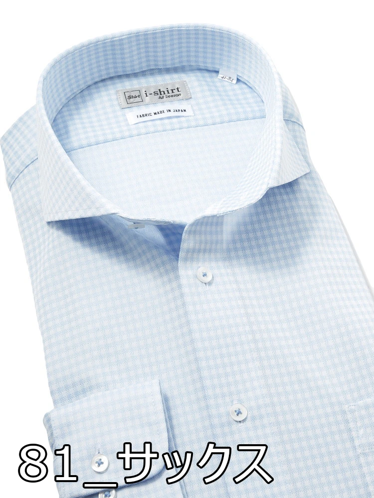 • サックス 【完全ノーアイロン】長袖 アイシャツ カッタウェイ ストレッチ 防汚 チェック ワイシャツ i-shirt 通年 1185765934
