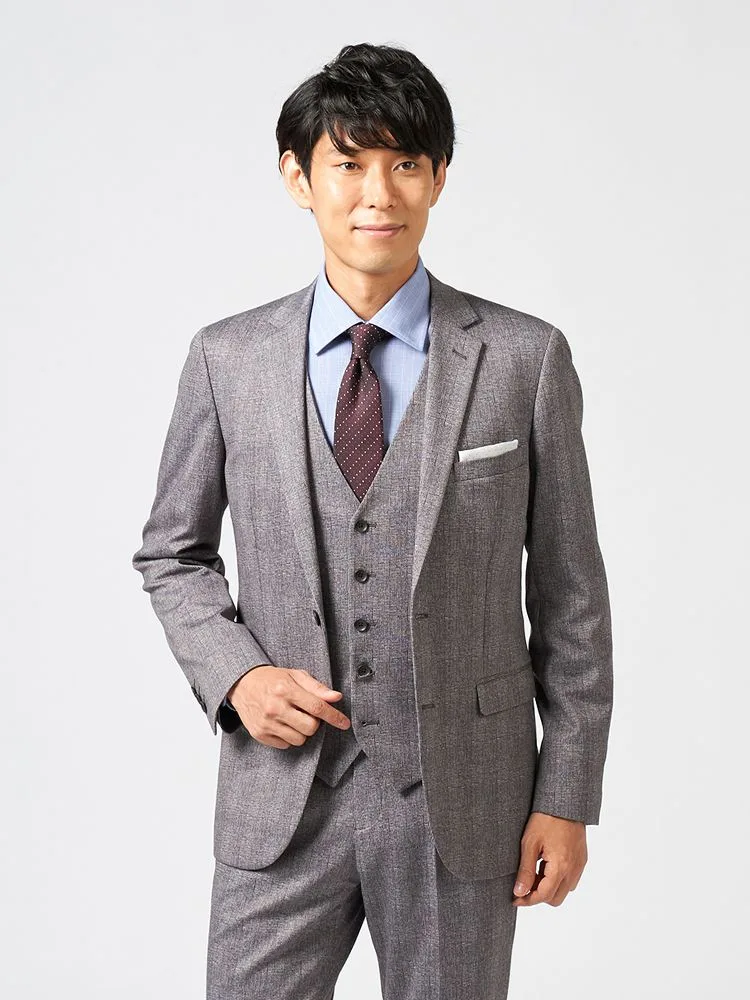【即納】スリーピーススーツ2つボタン【WEB限定】上下ウォッシャブル小柄グレー秋冬