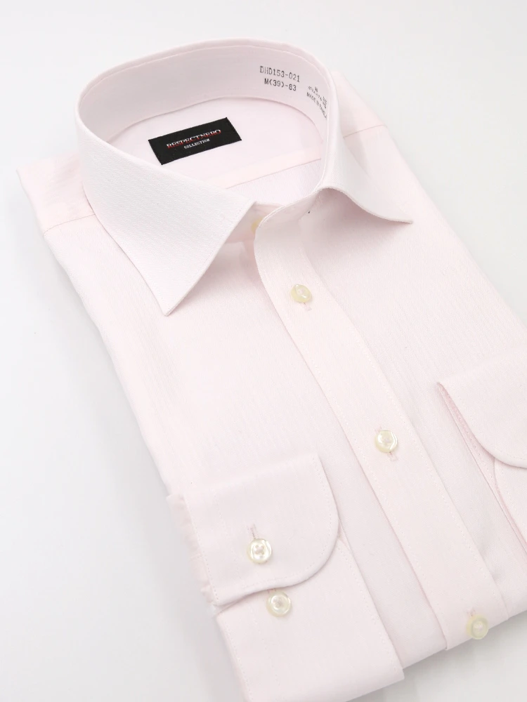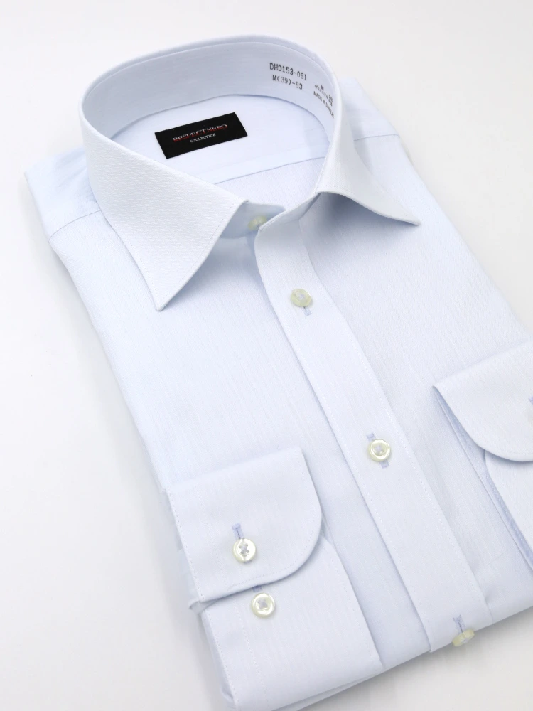 形態安定加工を施した、お手入れ簡単な長袖ワイシャツ。