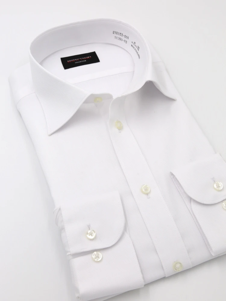 【形態安定】長袖 ワイシャツ セミワイドカラー ツイル柄 nero 通年(オフホワイト)