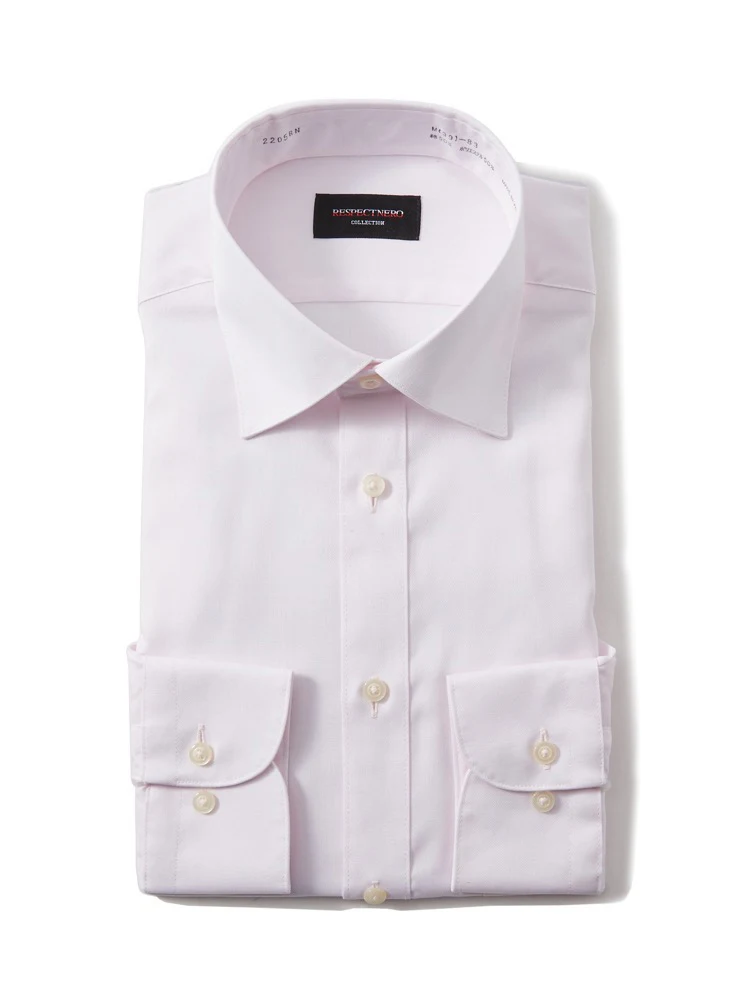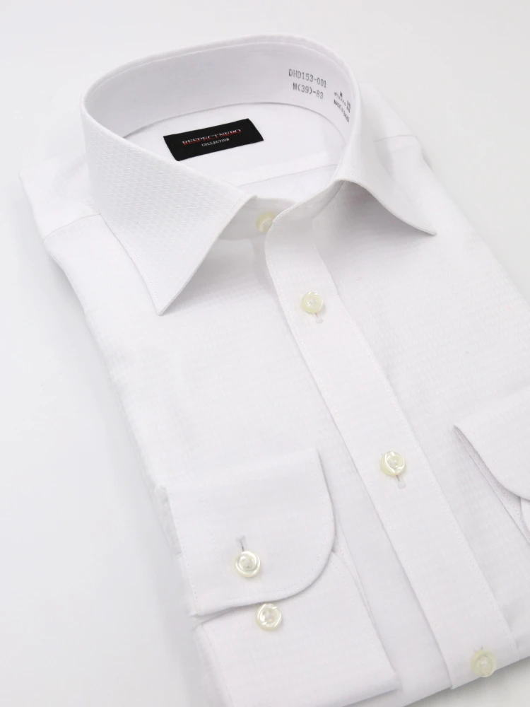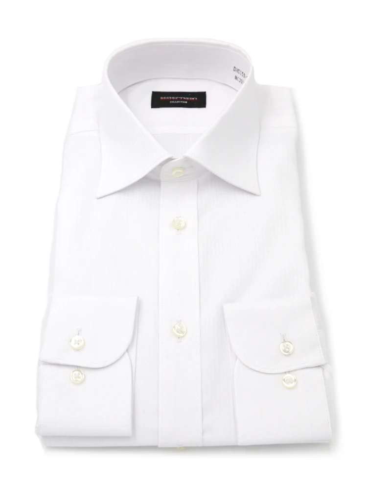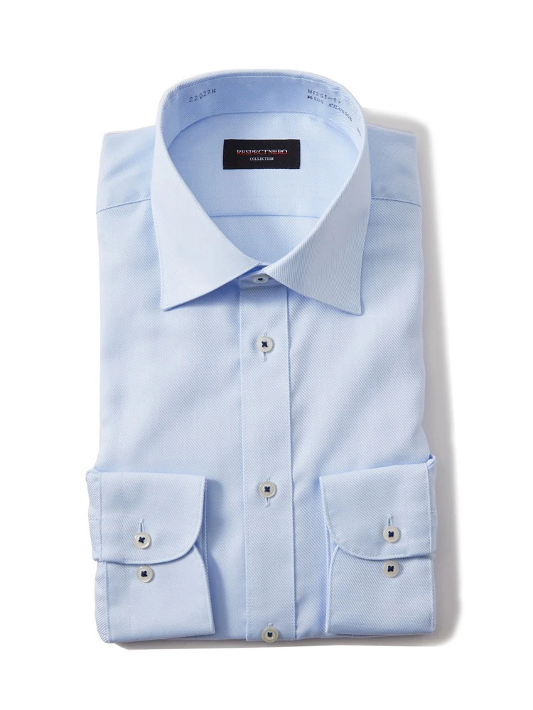 形態安定加工を施した、お手入れ簡単な長袖ワイシャツ。