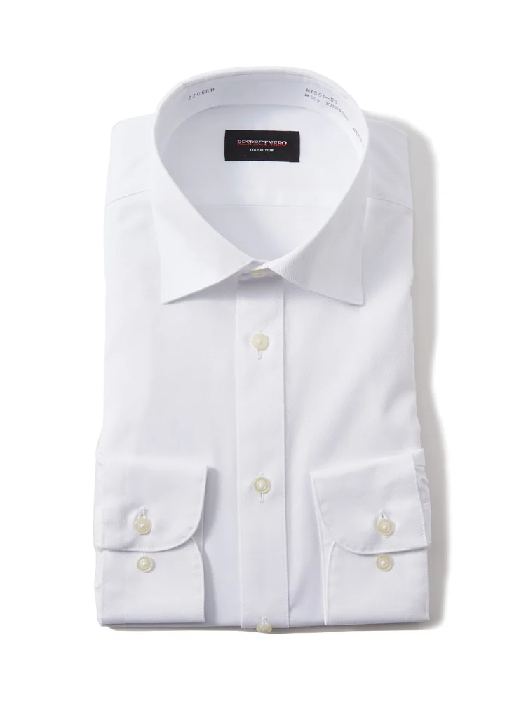 【形態安定】長袖 ワイシャツ セミワイドカラー ダイヤ柄 nero 通年