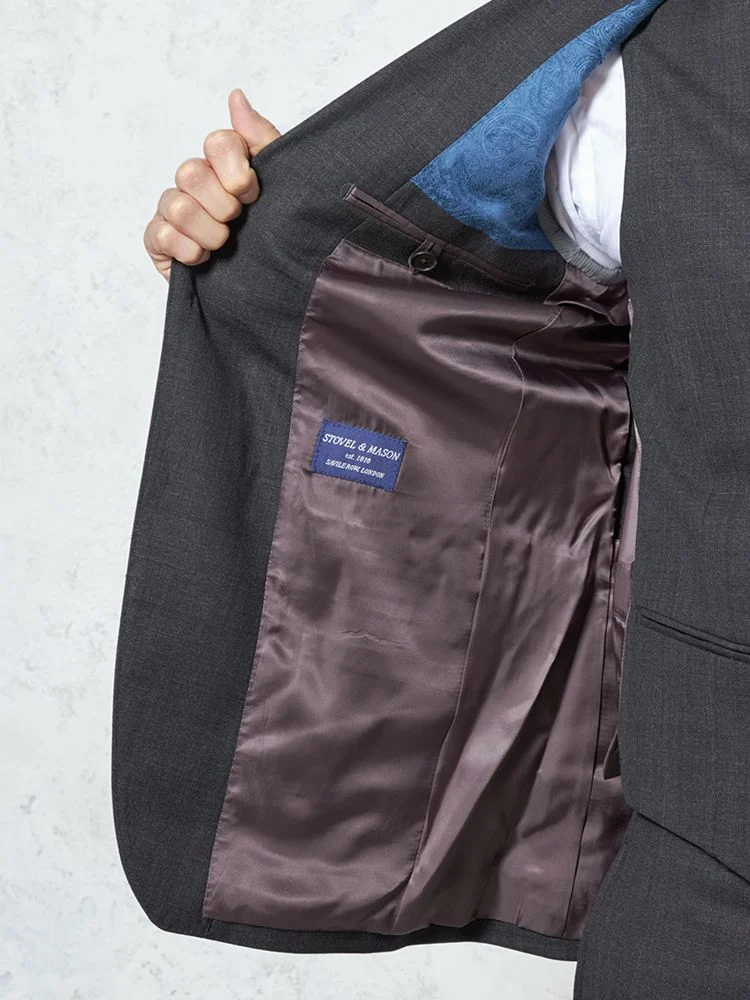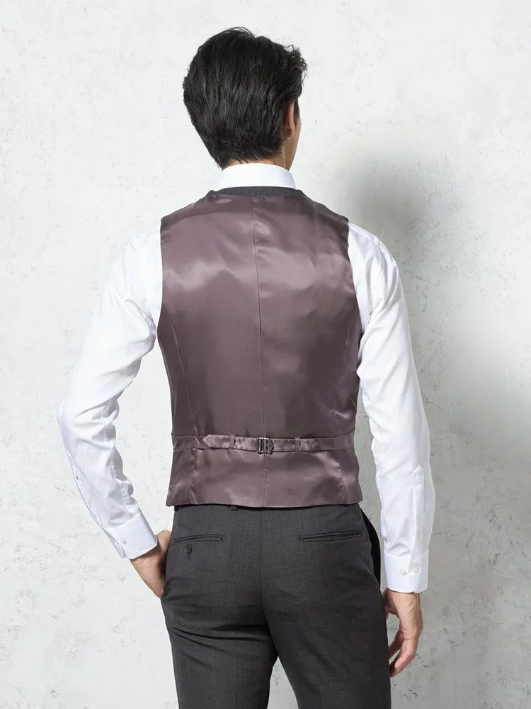 裏地やベストの後ろ身頃には光沢生地を使うなど華やかさを添えたディテールにもこだわっています。