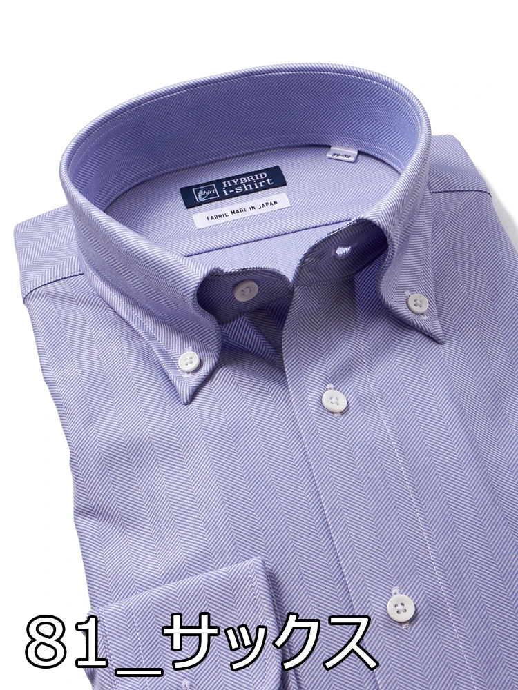 【ハイブリッドアイシャツ】長袖ワイシャツボタンダウン形態安定ストレッチロイヤルオックス通年