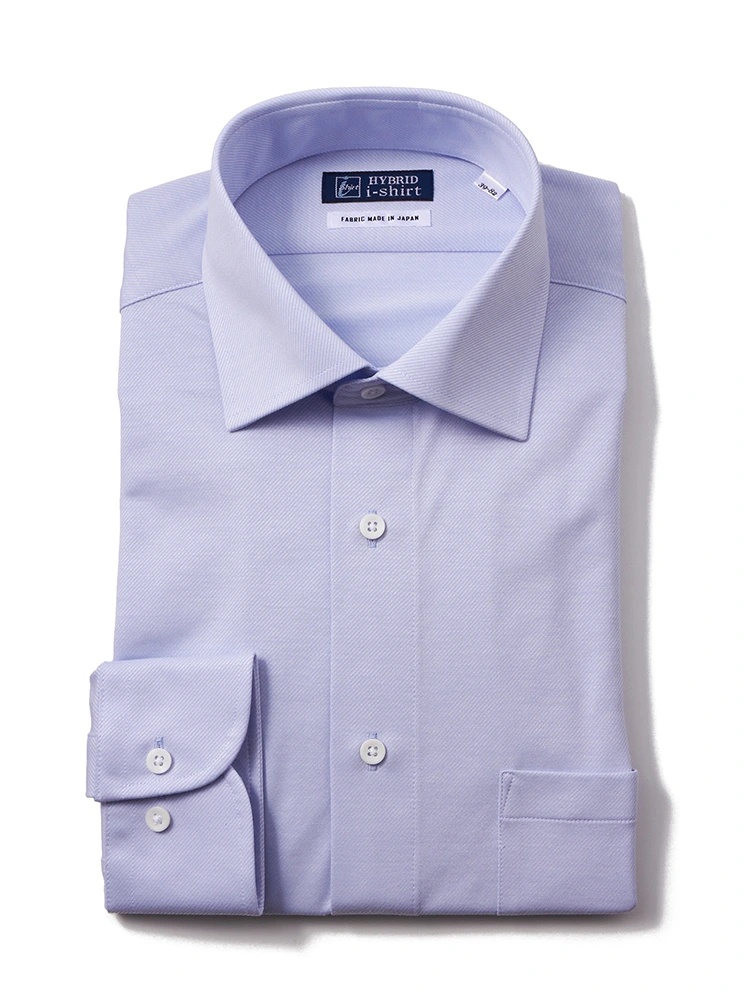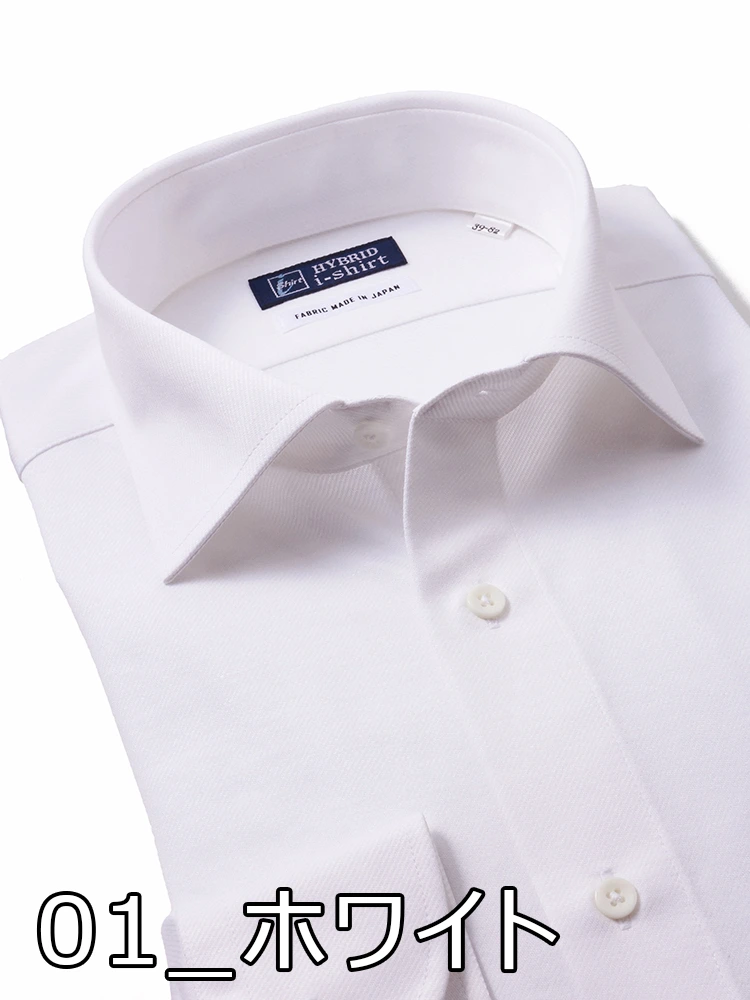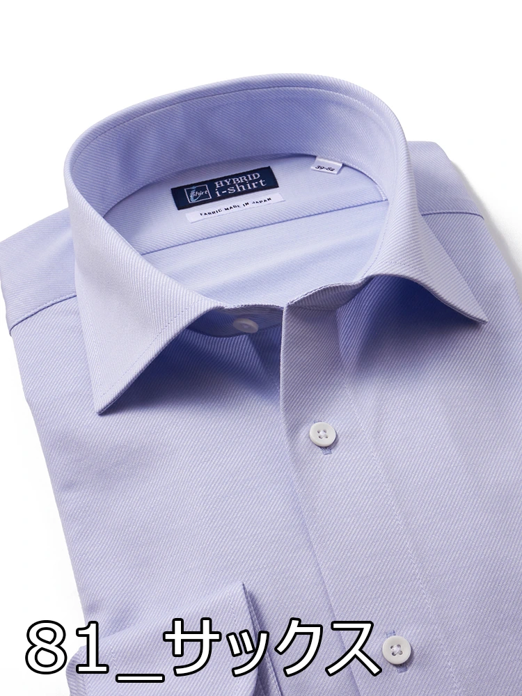 【ハイブリッドアイシャツ】長袖ワイシャツセミワイド綿混素材形態安定織柄無地i-shirt通年
