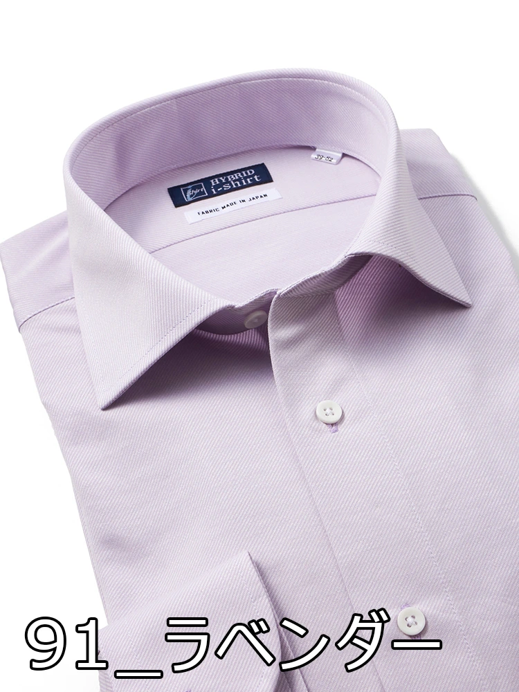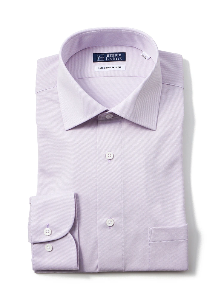 【ハイブリッドアイシャツ】長袖 ワイシャツ セミワイド 綿混素材 形態安定 無地 i-shirt 通年(ラベンダー)