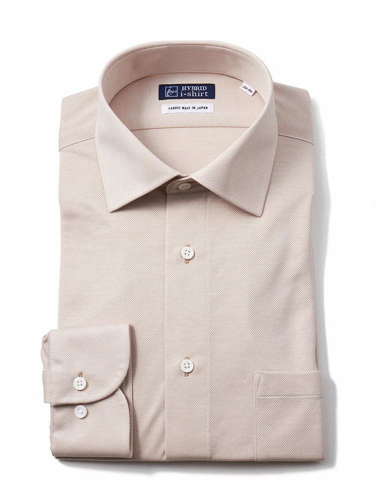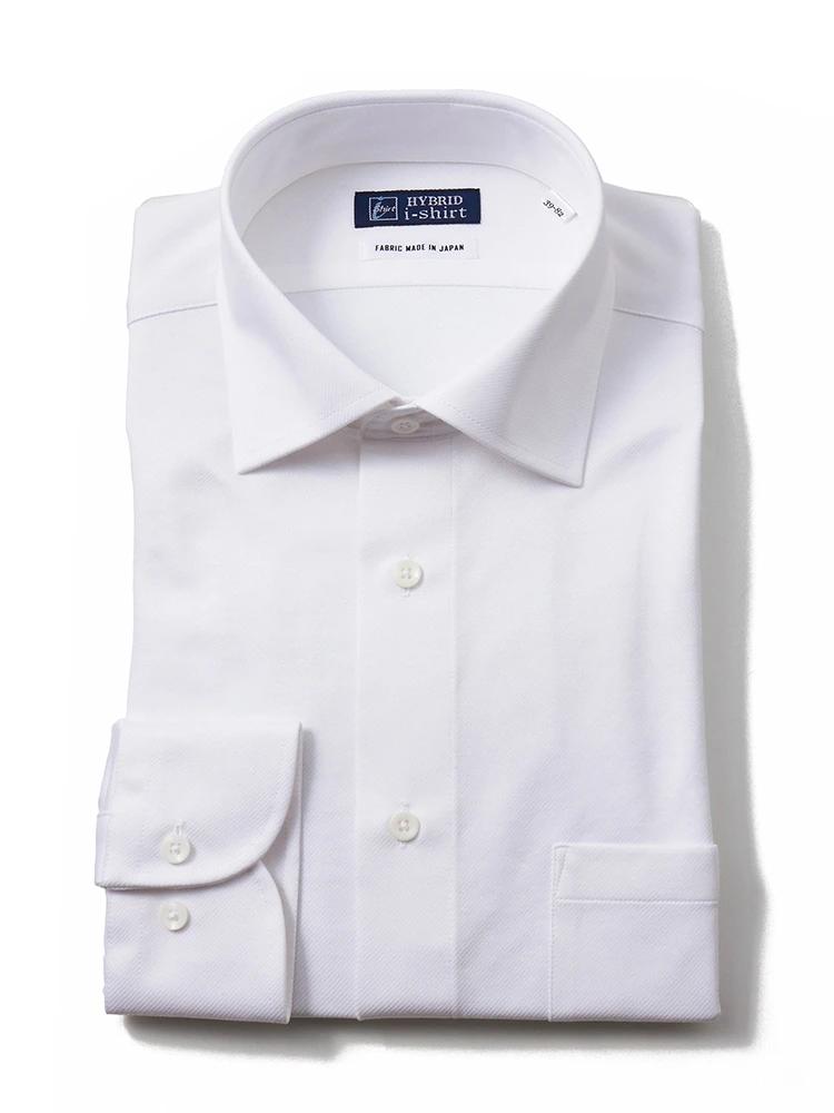 綿素材ワイシャツの風合いを表現した【ハイブリッドアイシャツ】。