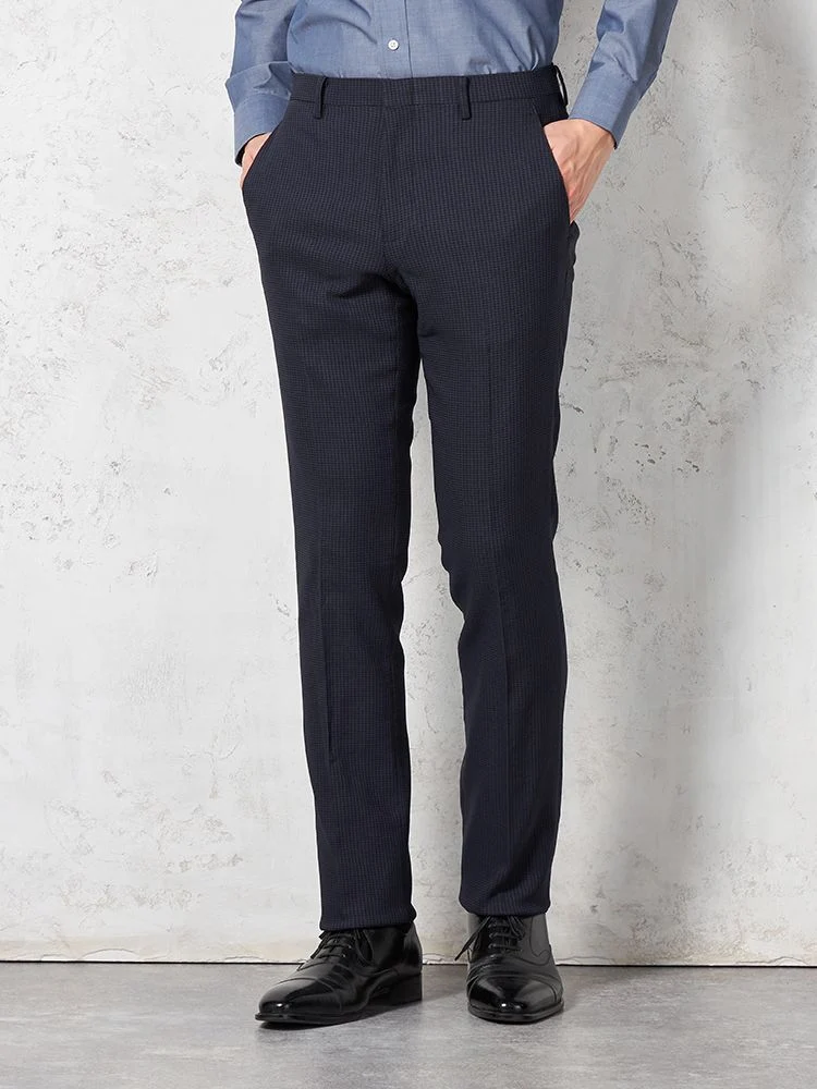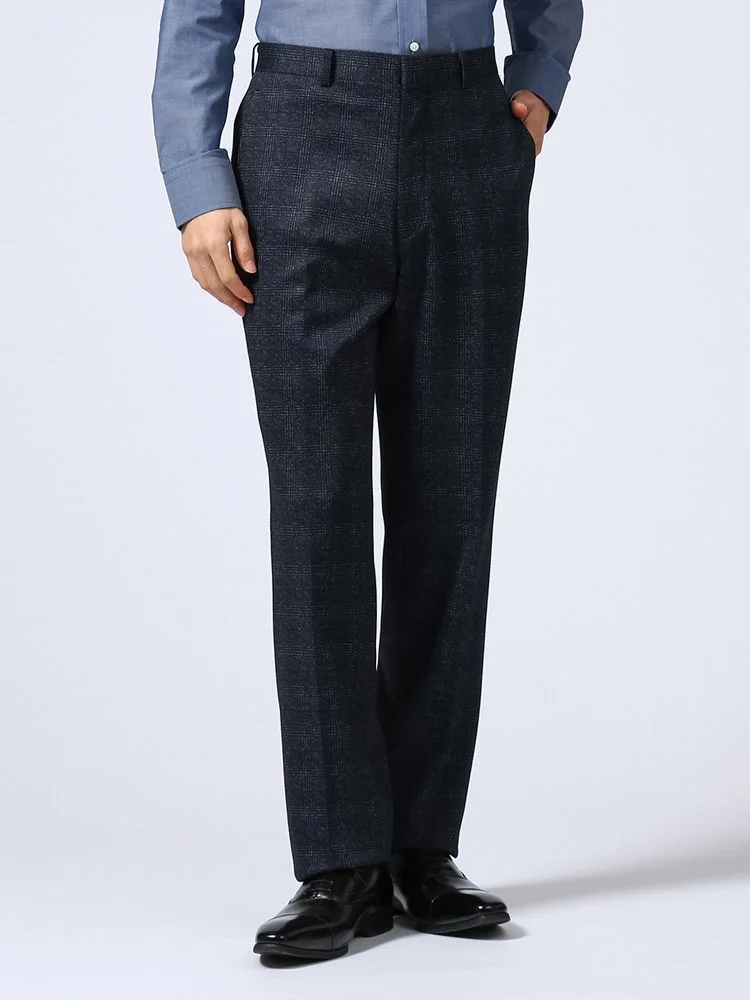 【上下ウォッシャブル】セットアップパンツノータックファイテン加工裏地ニット素材ネイビーグレンチェックPHITEN秋冬